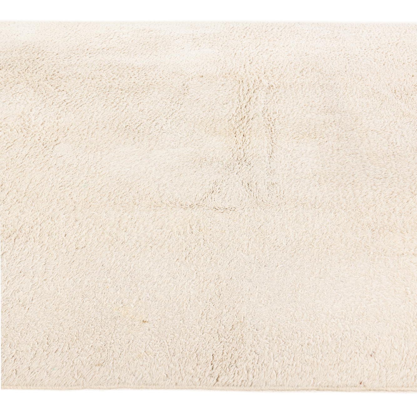 A 7x10 rectangular ivory shag rug with subtle tribal patterns, perfect for a modern living room.