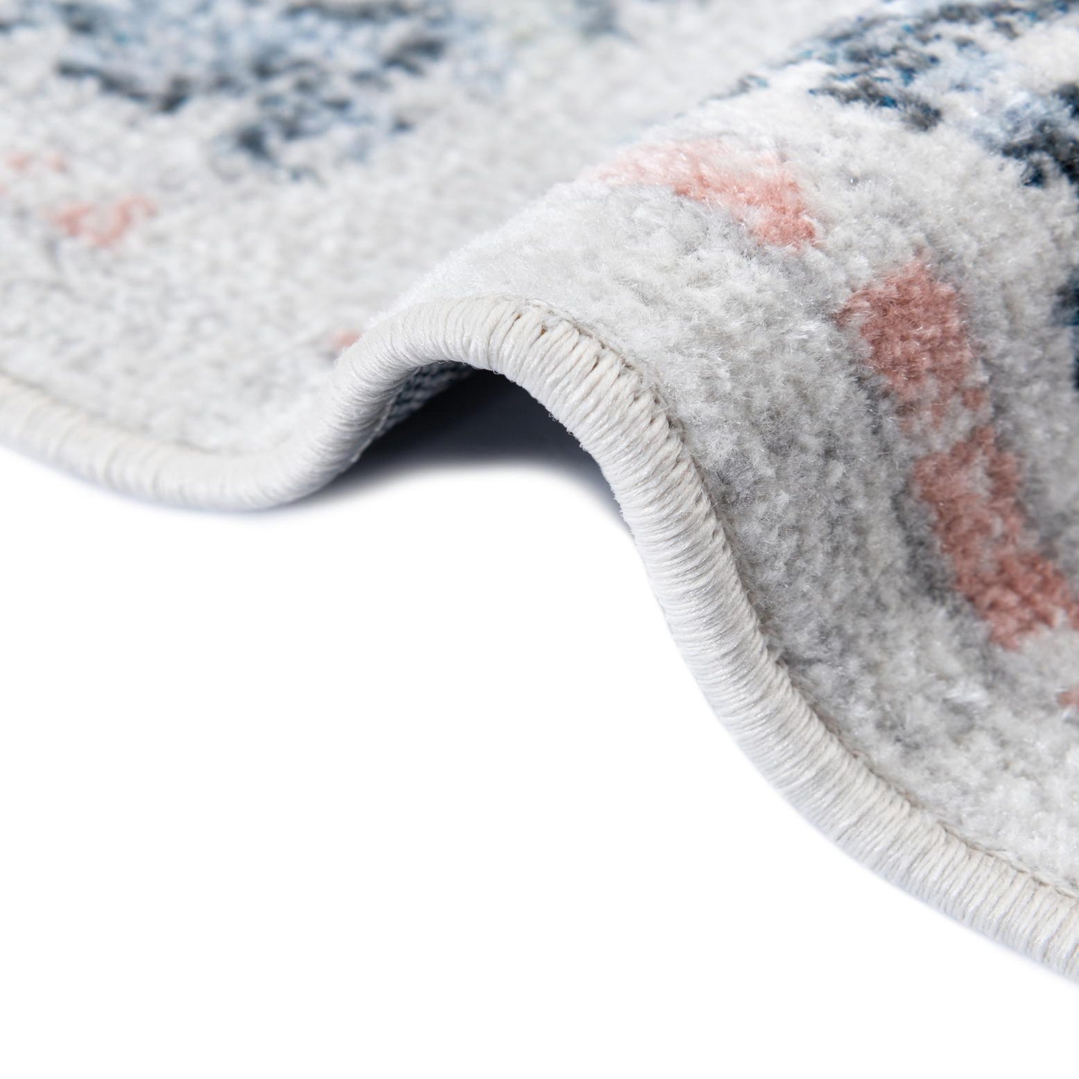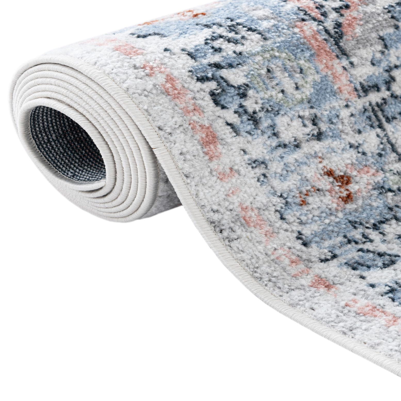The patterned texture encompasses traditional motifs that evoke a sense of heritage, yet the colors ensure a contemporary edge suitable for modern interior design. This rug is practical as well as decorative, offering stain-resistant, pet-friendly, machine washable, and shed-free properties, making it a versatile choice for busy households.