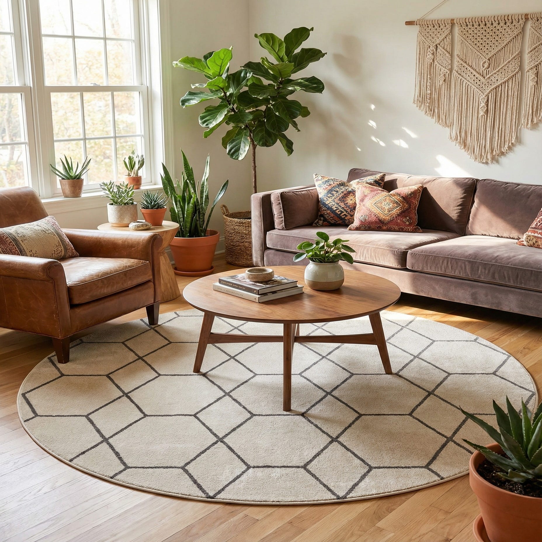 Machine made from 100% polypropylene, the rug has a low-profile pile that feels smooth underfoot and lays flat beneath furniture. Its understated texture and neutral palette work well under a round dining table, centered in a cozy seating area, or layered in a bedroom to add visual interest without competing with other patterns. Pair it with light wood tones and charcoal accents for a Scandinavian look, or set it against mid-century pieces for a refined, modern contrast.