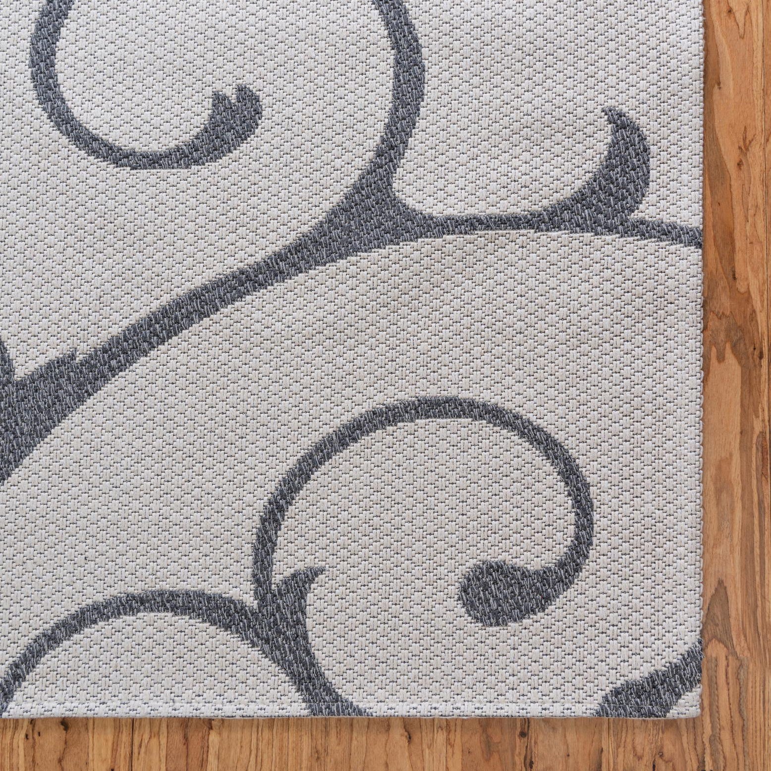 The Georgia Collection presents an elegantly crafted 8-foot runner rug that combines traditional style with modern practicality. This piece is machine-woven of 100% cotton, boasting a harmonious blend of ivory and gray hues. The predominant ivory background is adorned with swirling gray patterns which add a touch of sophistication to the piece.