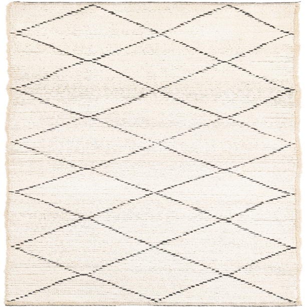 Primary color is Ivory. Colors in this rug include: Ivory, Black.