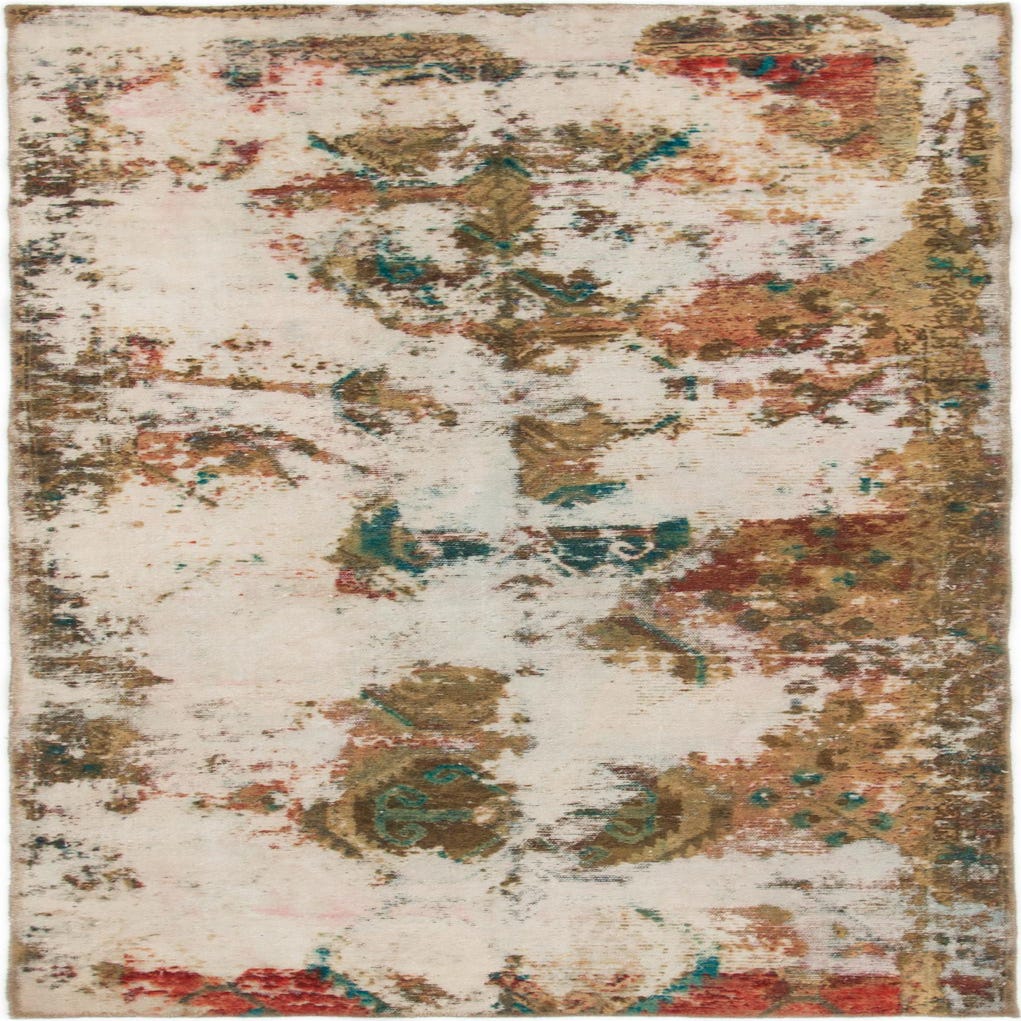 This Persian Ultra Vintage rug is an antique Persian Rug that has been washed, over-dyed, and then shaved down to a low pile. Look at the detail pictures to fully appreciate the uniqueness of this piece.