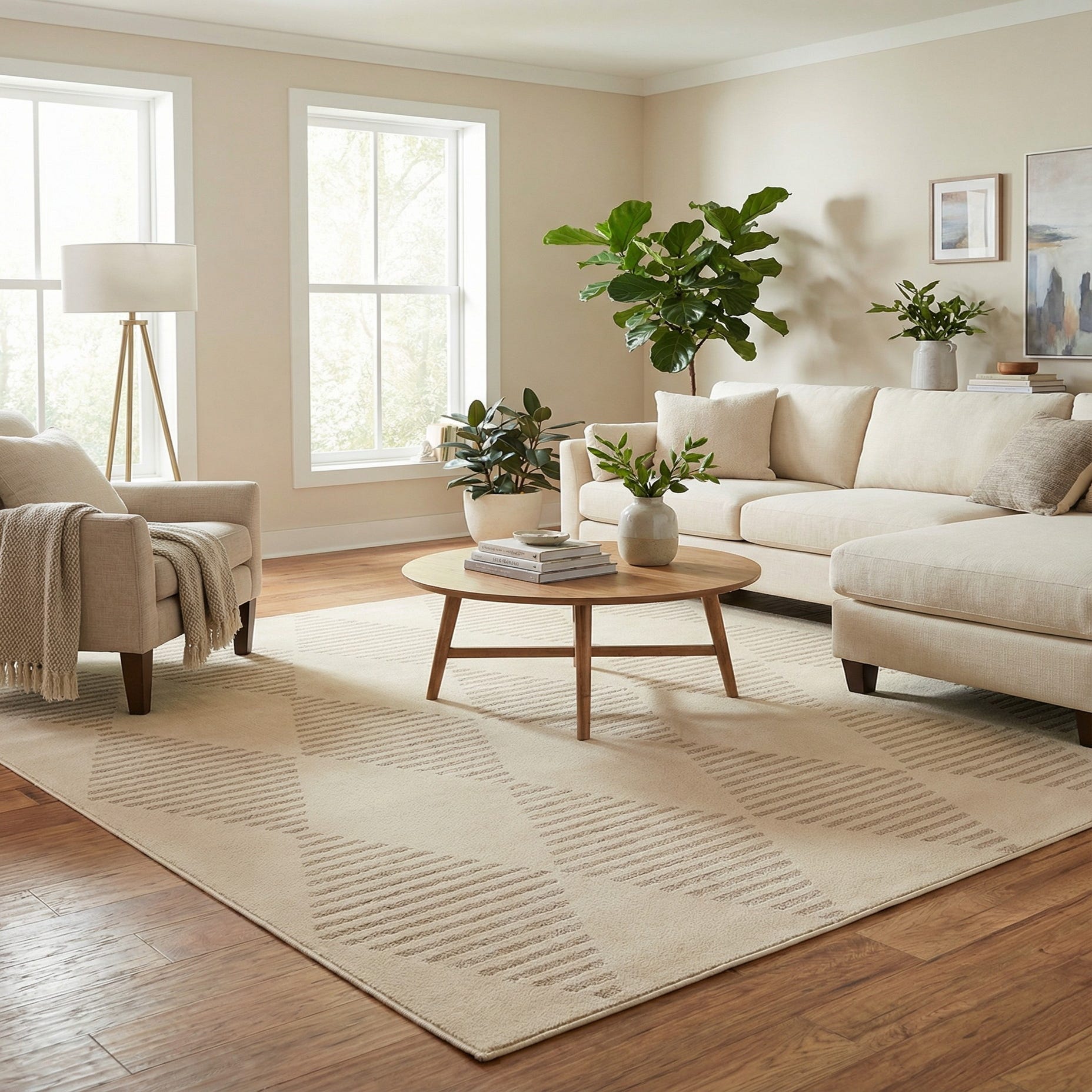 Primary color is Ivory. Colors in this rug include: Ivory, Light Brown.