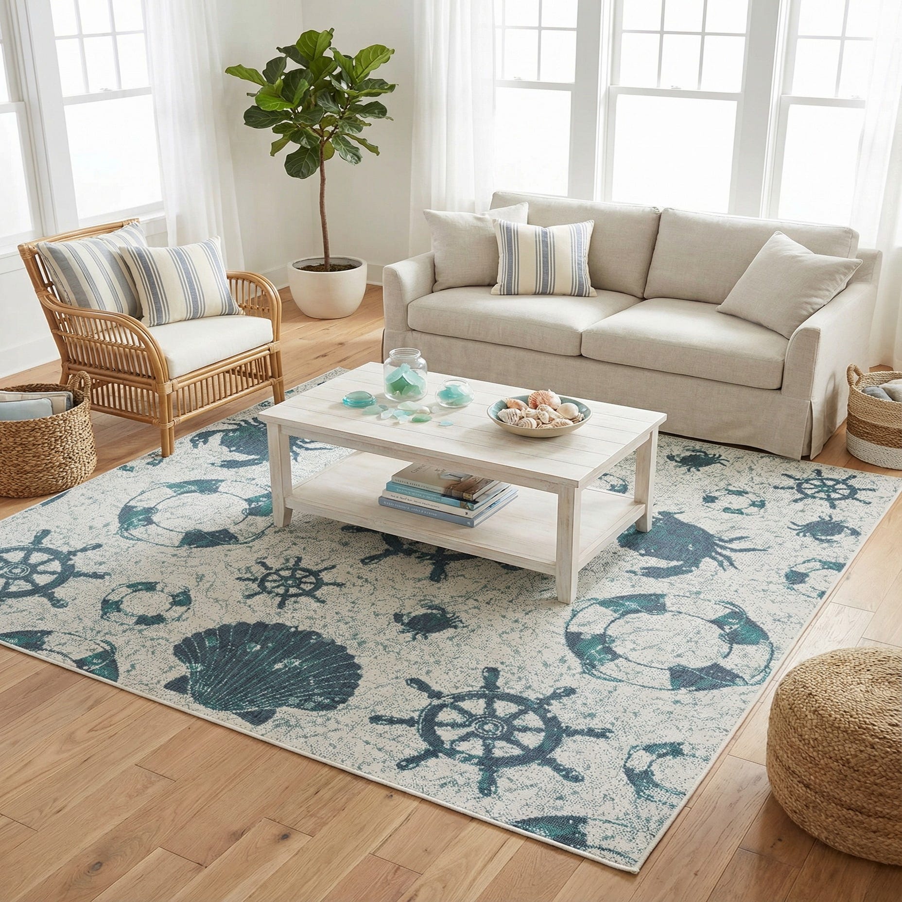 7' 10 x 7' 10 Washable Coastal Indoor / Outdoor Square Rug
