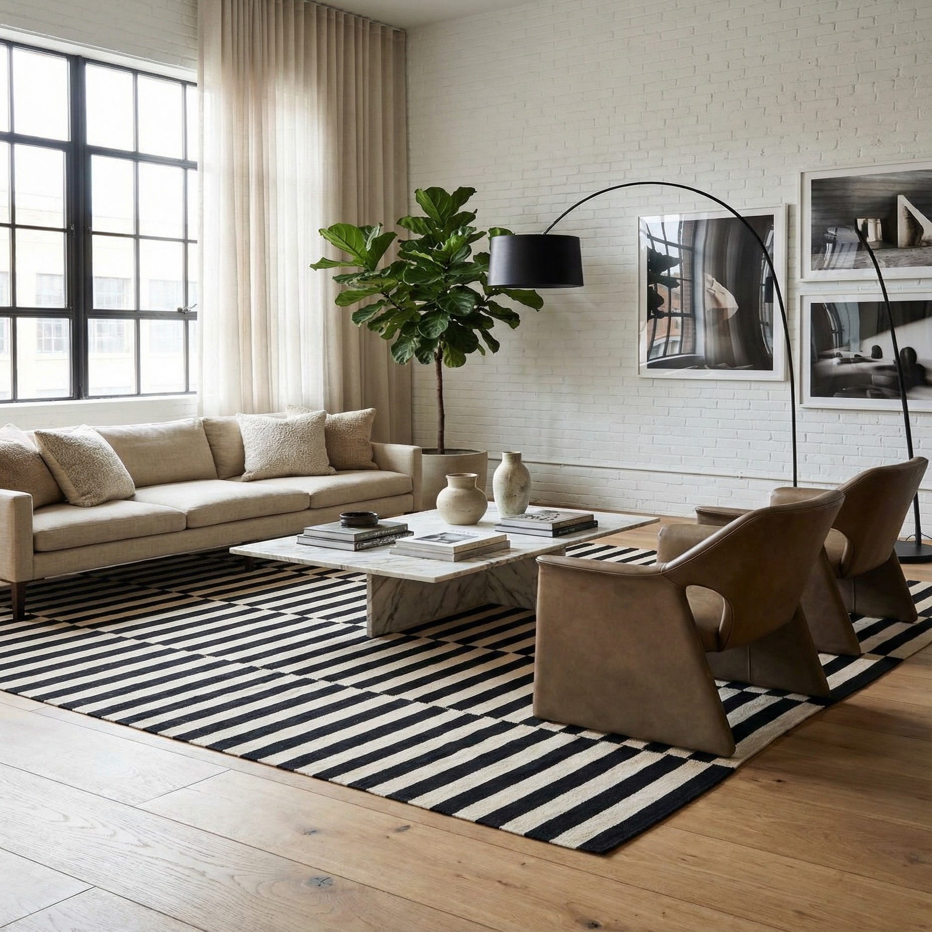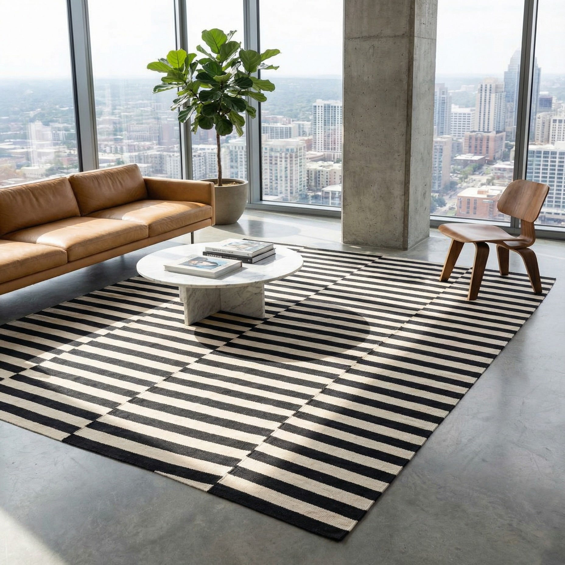 Suitable for a variety of interior design scenarios, this rug is a strong contender for contemporary and minimalist spaces where it can serve as a focal point without overwhelming the decor. The timeless color combination and simple pattern allow it to seamlessly integrate with Scandinavian-themed rooms or act as a dynamic counterpart in eclectic or bohemian settings. The rug's flatweave construction ensures it is durable and easy to place in high-traffic areas, making it a functional choice for living rooms, dining rooms, or home offices seeking a touch of modern flair.