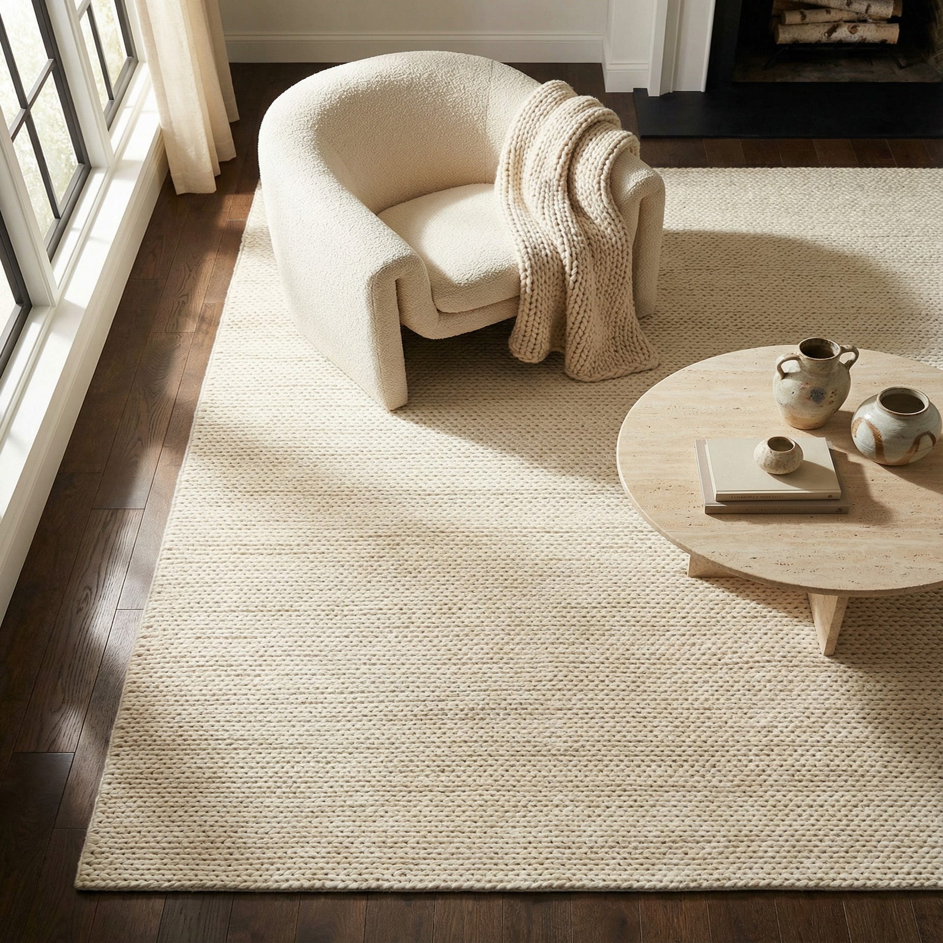 This rug brings a quiet, modern sensibility to living rooms, bedrooms, or cozy reading nooks. It pairs naturally with light woods, linen upholstery, and a neutral palette for a Scandinavian or coastal look, and also provides a clean foundation for layered patterns and bolder accent pieces in transitional and contemporary interiors. Use it to anchor a seating group, soften a sleeping area, or brighten an open-plan space while keeping the overall scheme airy and understated.