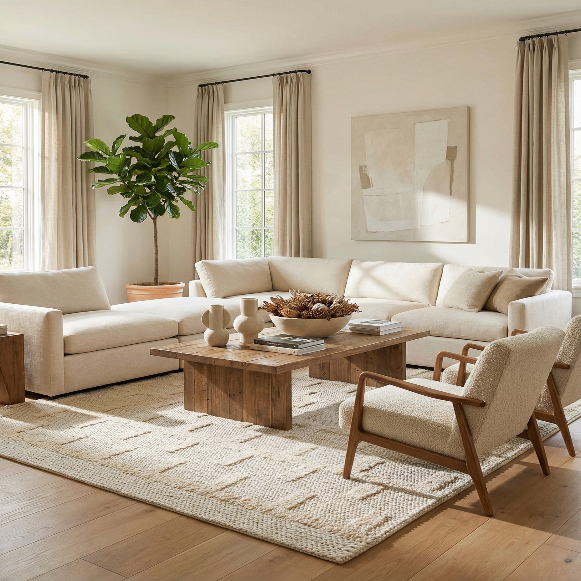 Hand-woven from 70% wool and 30% cotton, this rug combines a soft underfoot feel with a structured, flatwoven background that holds its shape. Its clean, understated pattern fits well in Scandinavian, modern farmhouse, coastal, or contemporary rooms—place it under a coffee table in the living room, beneath a bed to soften the space, or in an entryway to add tactile interest. Pair it with natural wood furniture, linen upholstery, and warm metallic accents for a calm, layered look.