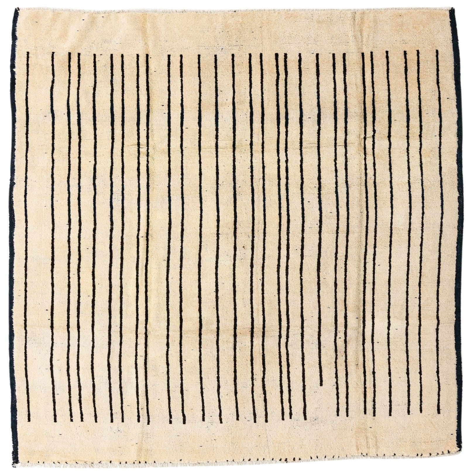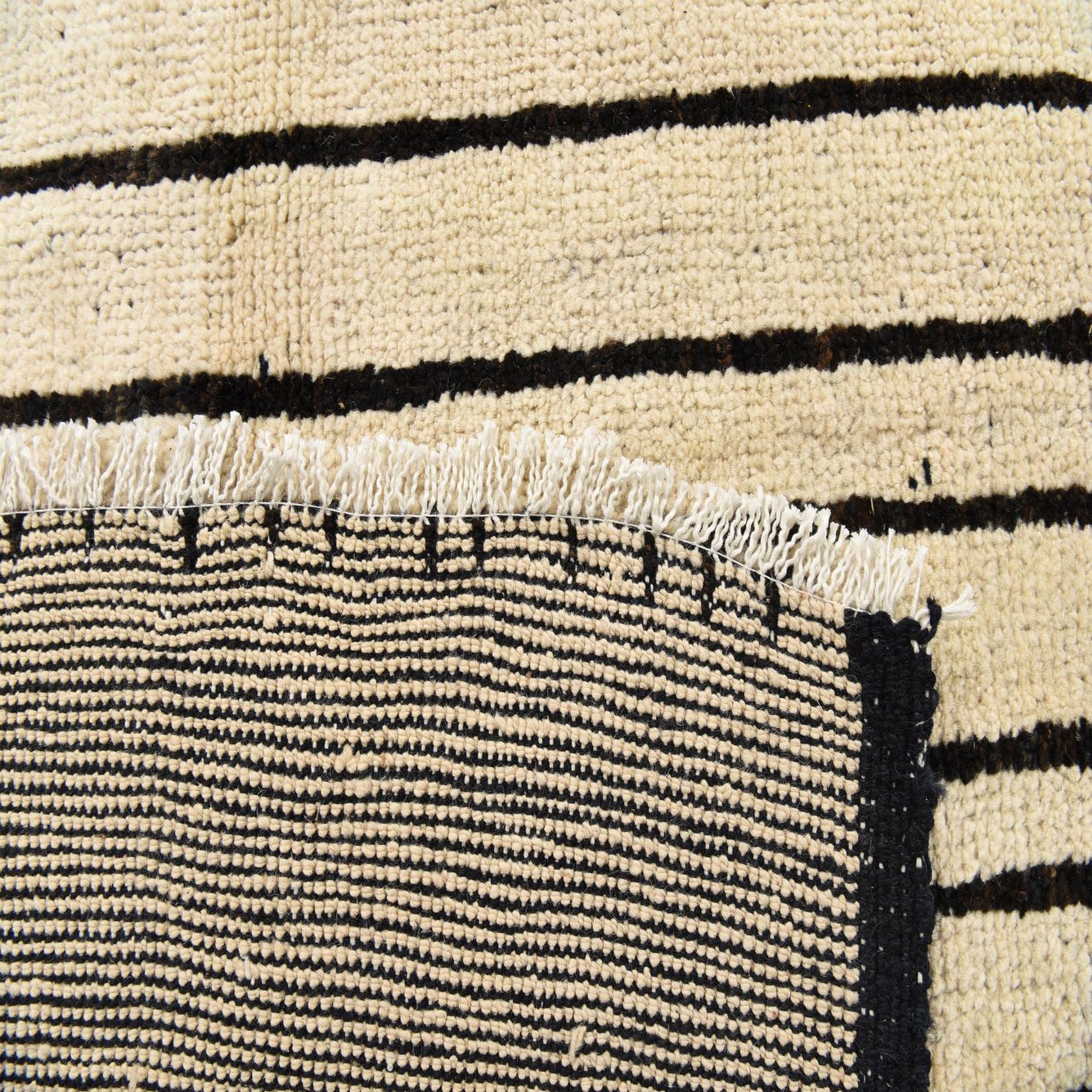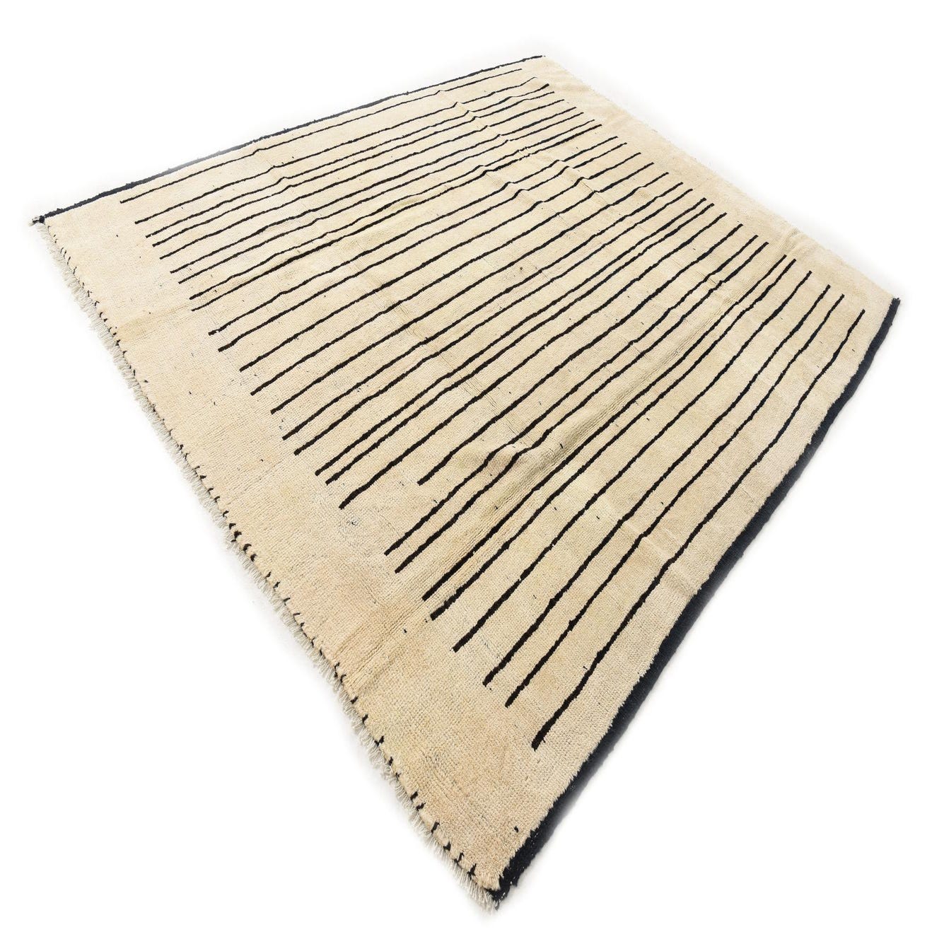 Primary color is Ivory. Colors in this rug include: Ivory, Black.
