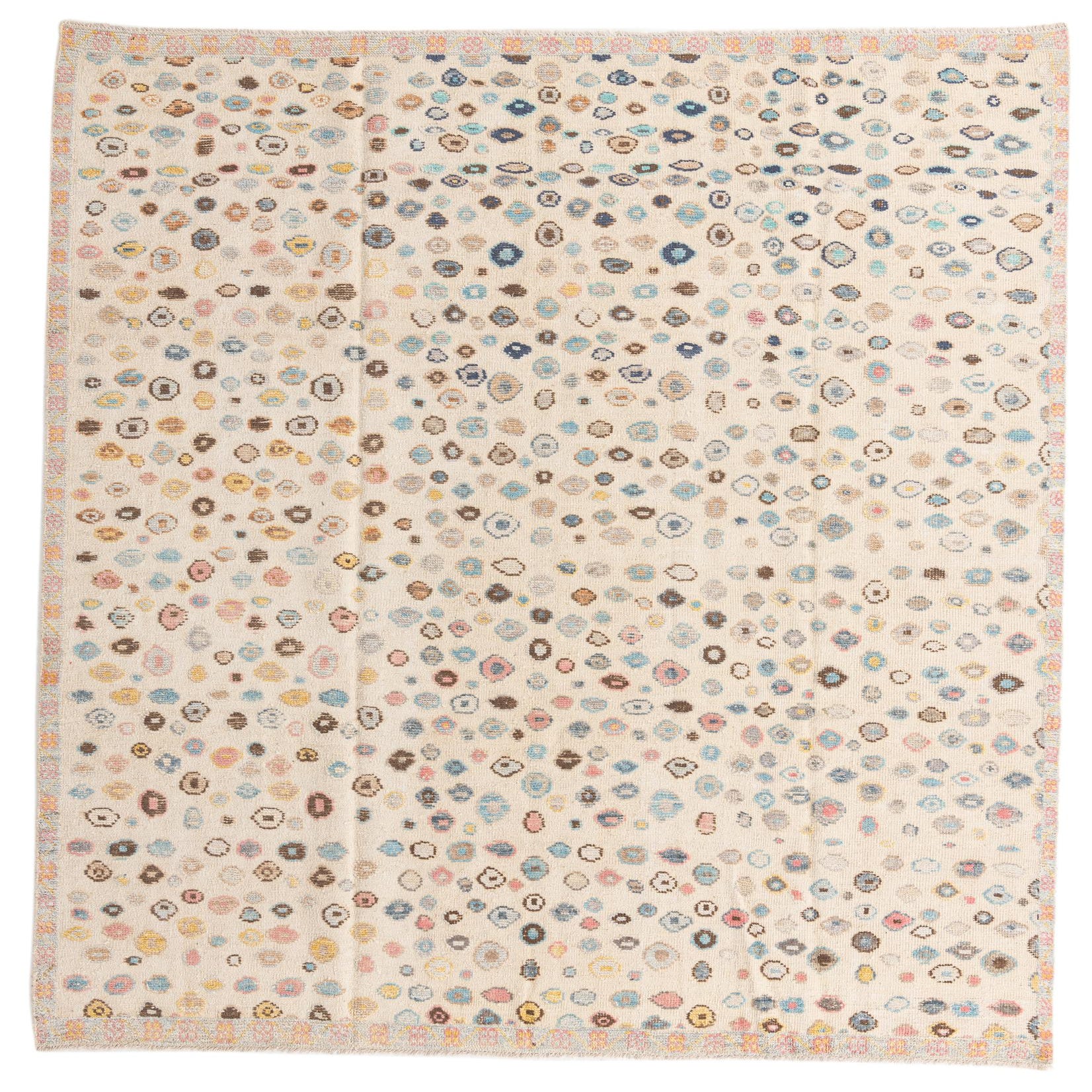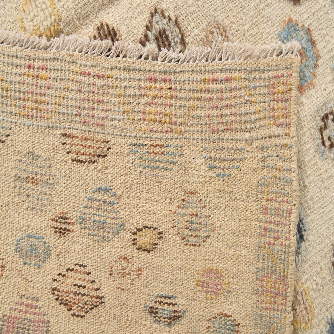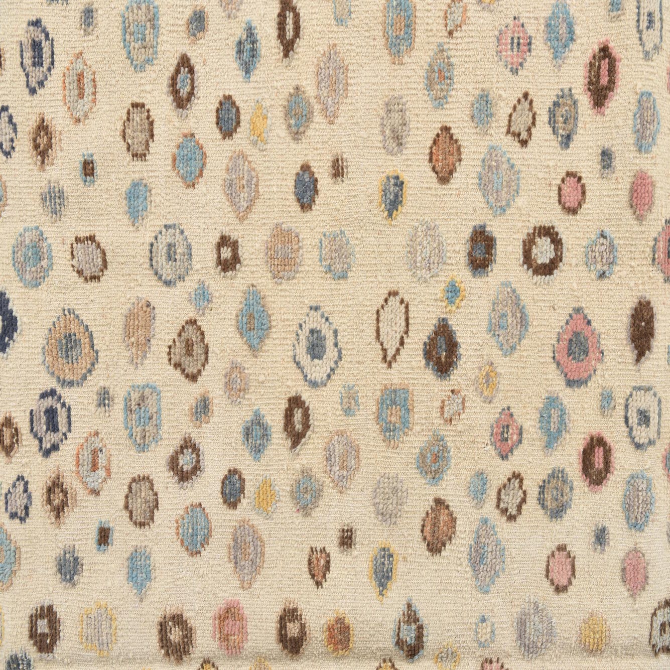 The rug's understated elegance and soft, neutral tones make it an adaptable piece for a variety of decor styles. It could effortlessly complement a minimalist interior, add a soft contrast to industrial elements, or harmonize with the natural textures often found in Scandinavian designs. Whether anchoring a living room seating area or defining a dining space, this rug provides a sophisticated foundation that invites layering with other decor elements for a cohesive interior. Its handcrafted quality and rich blend of colors offer both visual interest and tactile comfort, making it a versatile choice for designers looking to create a warm and inviting atmosphere in residential or professional settings.