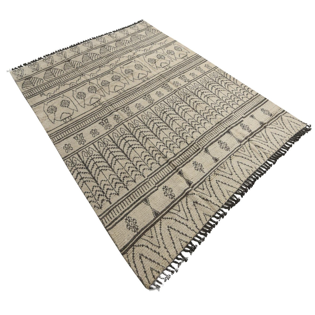 Primary color is Ivory. Colors in this rug include: Ivory, Black.