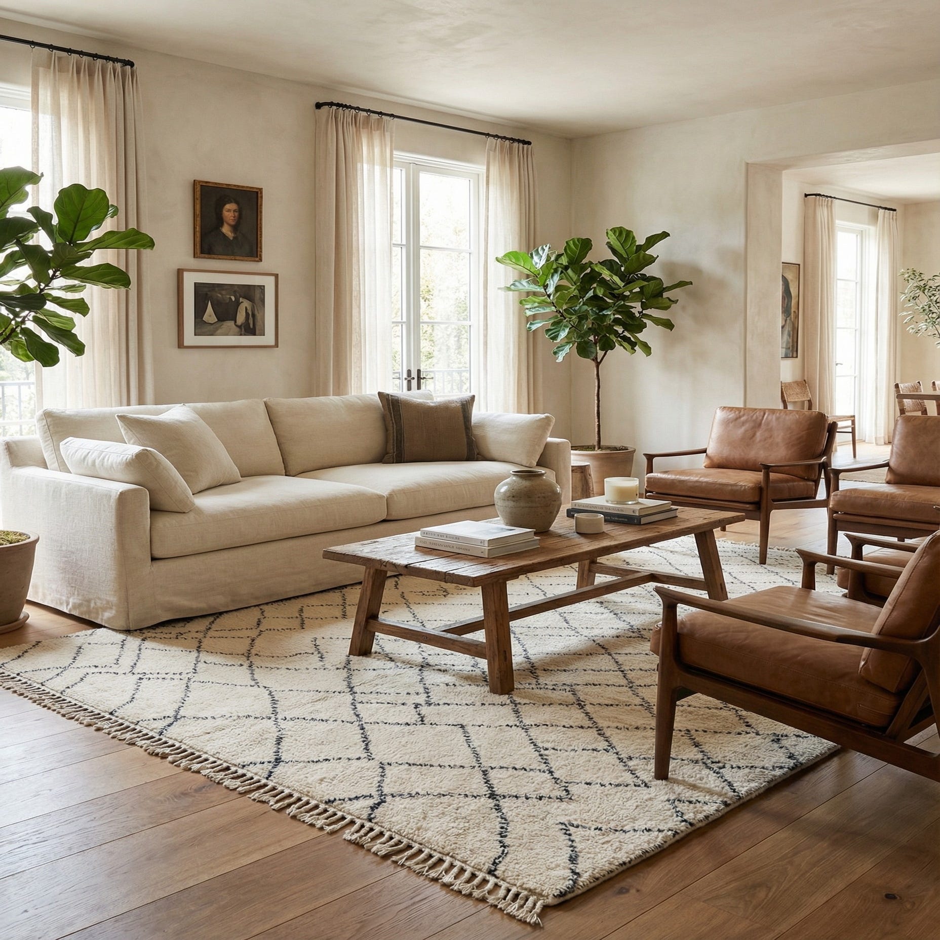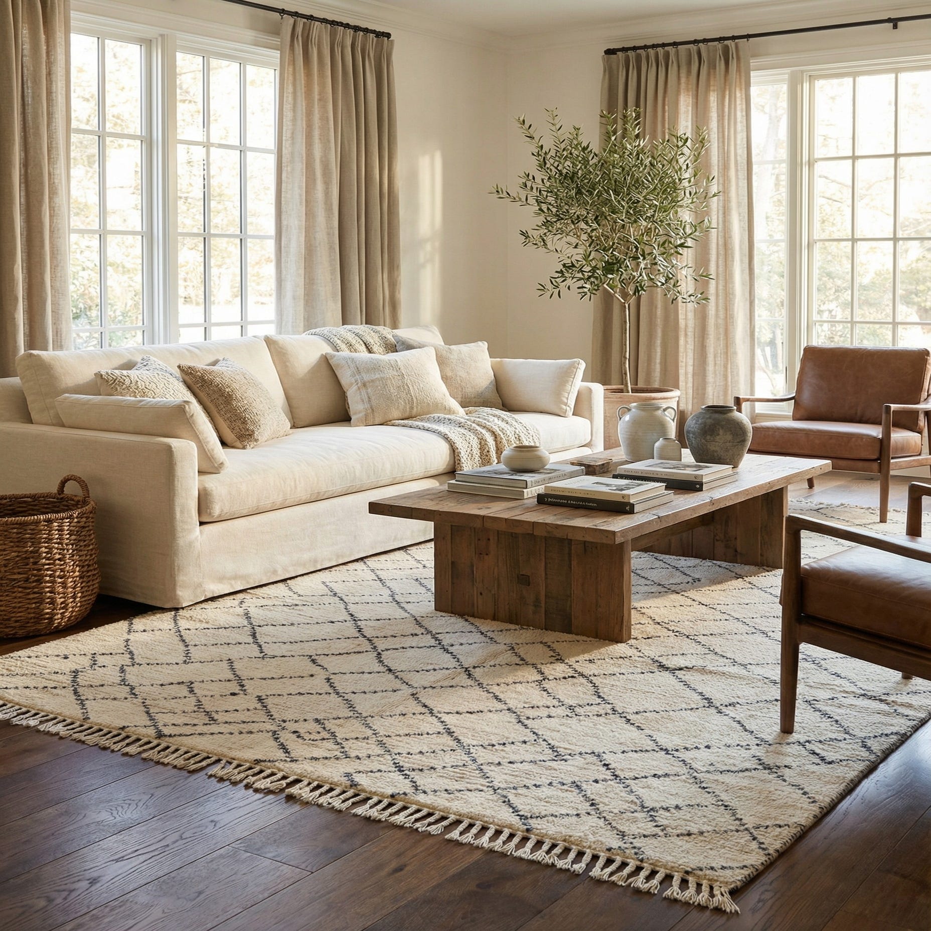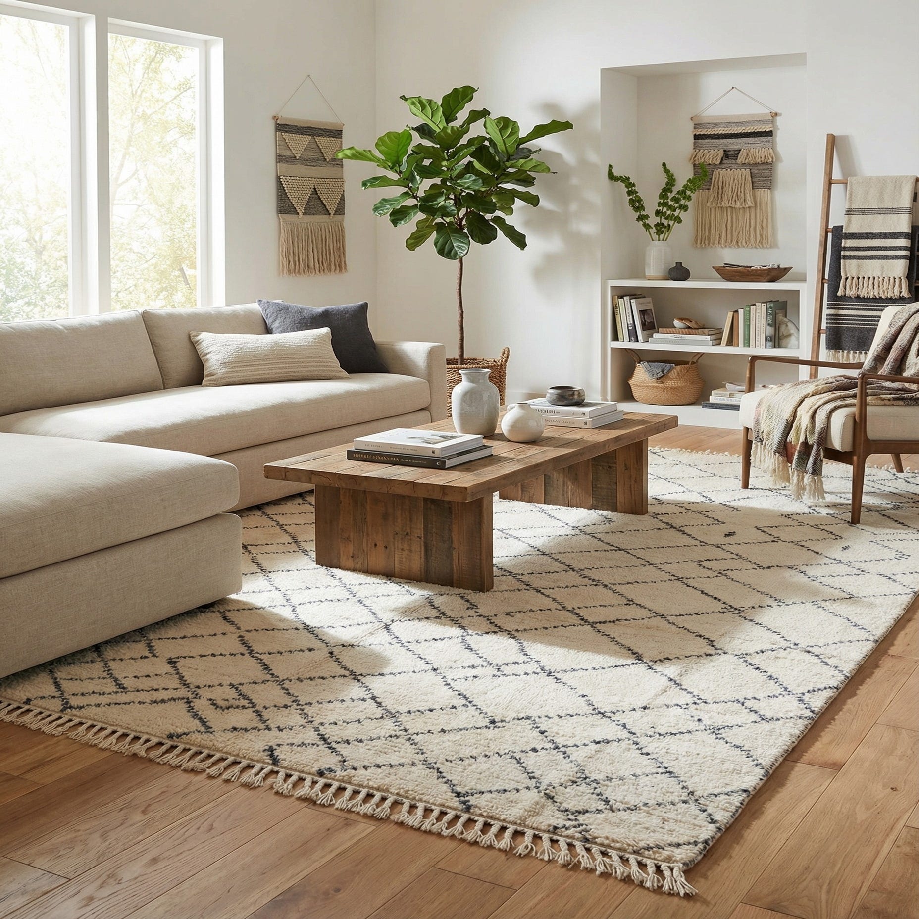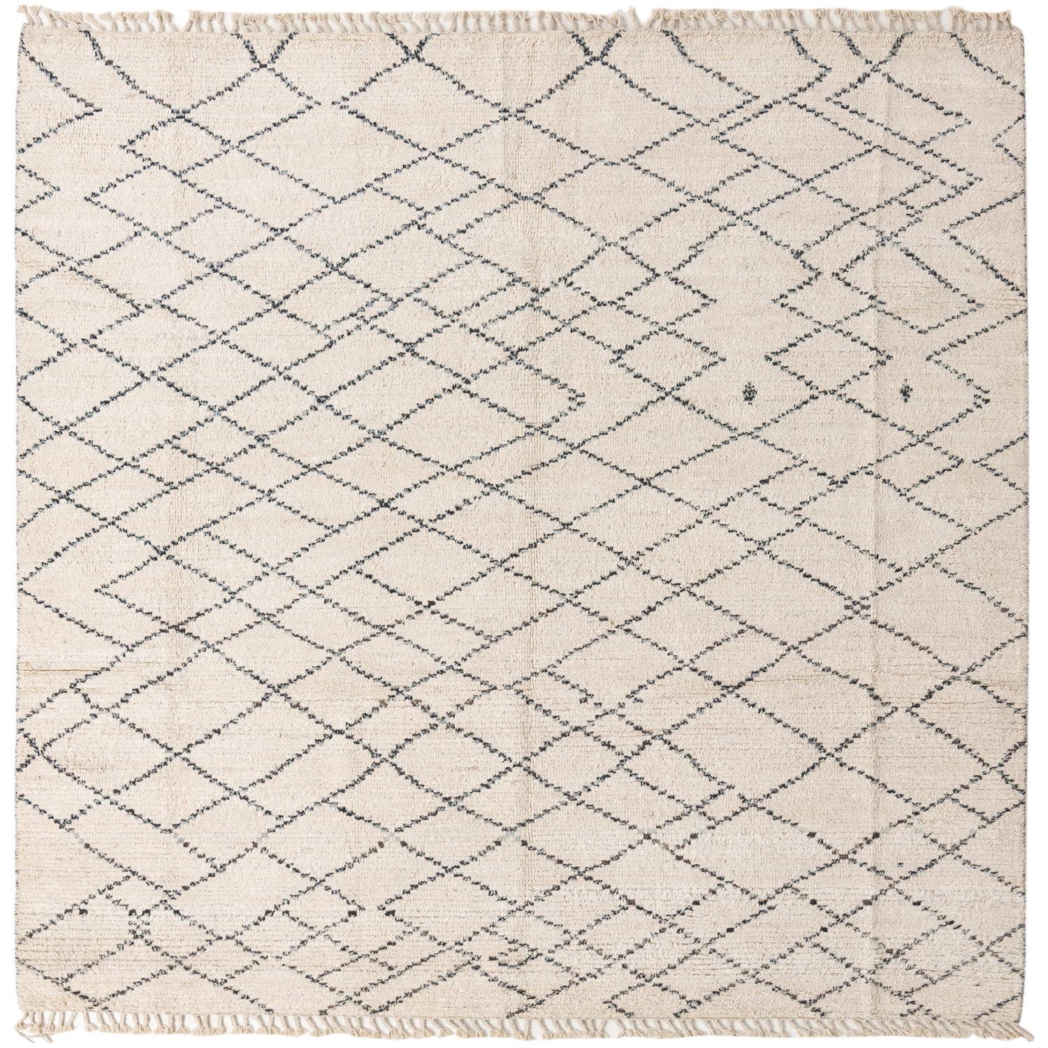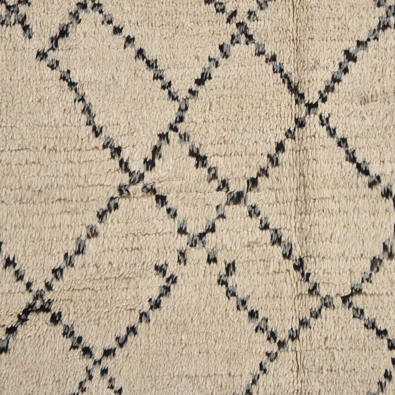 The rug's pattern, with its clean lines and minimalist diamond motifs, draws inspiration from traditional Moroccan designs while exuding a modern sensibility. Each knot is meticulously crafted, ensuring durability and a lasting aesthetic.