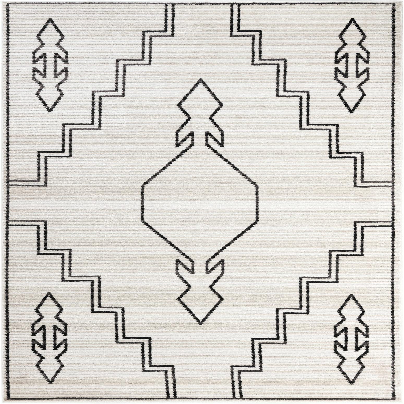 Primary color is Ivory. Colors in this rug include: Ivory, Black.