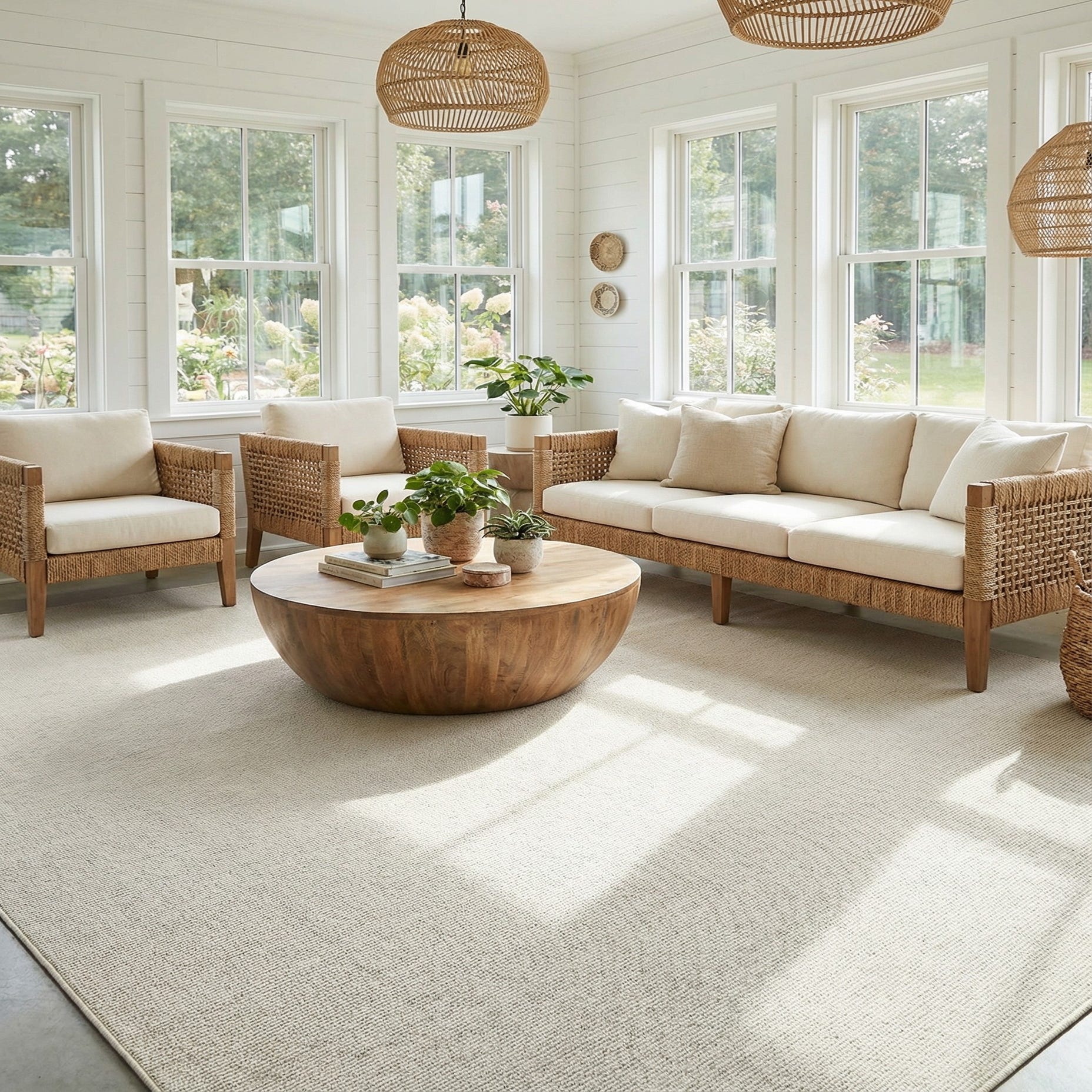 The Outdoor Solid collection presents a versatile 8x10 area rug crafted from 100% Polypropylene, offering durability and easy maintenance. This piece features a clean Ivory background with a subtly textured weave, providing a simple yet sophisticated foundation for any outdoor or indoor space. The understated design complements a range of decor styles from modern minimalism to casual coastal, making it an adaptable choice for patios, dining areas, or living rooms. Its construction is suitable for high-traffic areas and the neutral ivory hue serves as a seamless backdrop for a variety of furniture and accessory choices.