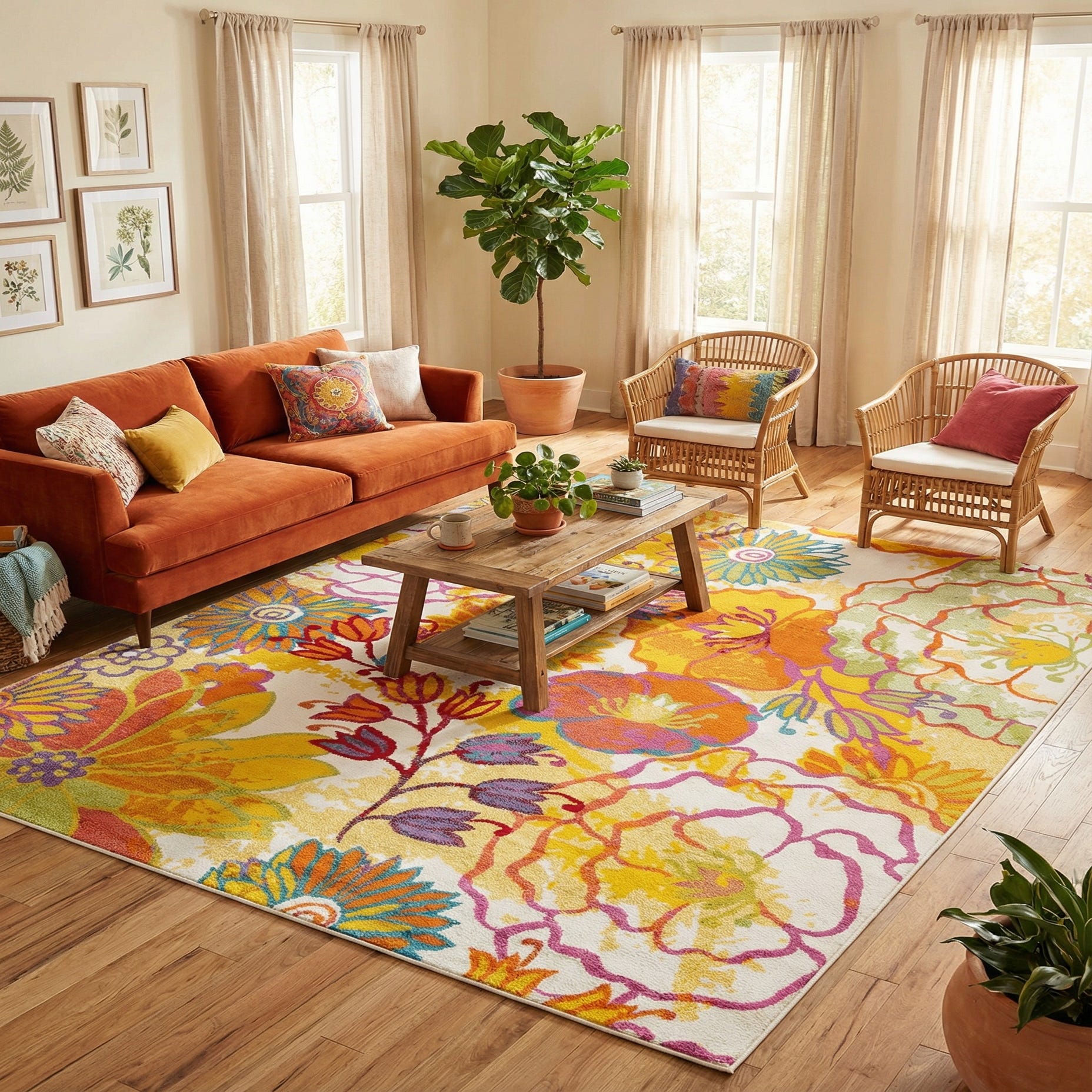 Machine-made from 100% polypropylene, this rug delivers consistent color and a stable weave suited to everyday living. It works well under a neutral sofa to introduce a bright focal point in a contemporary living room, as a cheerful layer in a sunlit breakfast nook or sunroom, or as a playful foundation in a child’s bedroom or casual family room. Pair it with natural wood and rattan for a bohemian or coastal look, or let it add a lively counterpoint to mid-century modern furnishings.