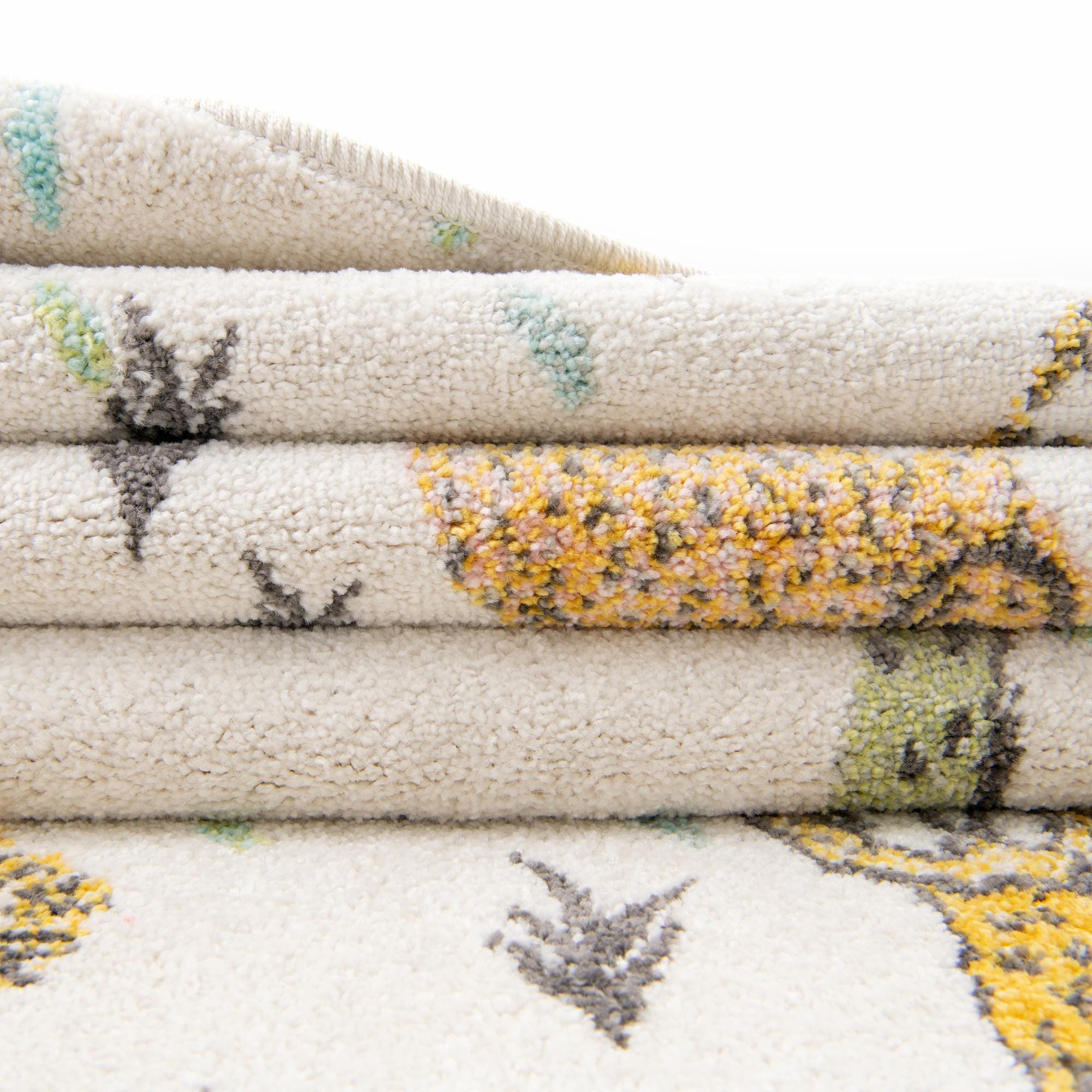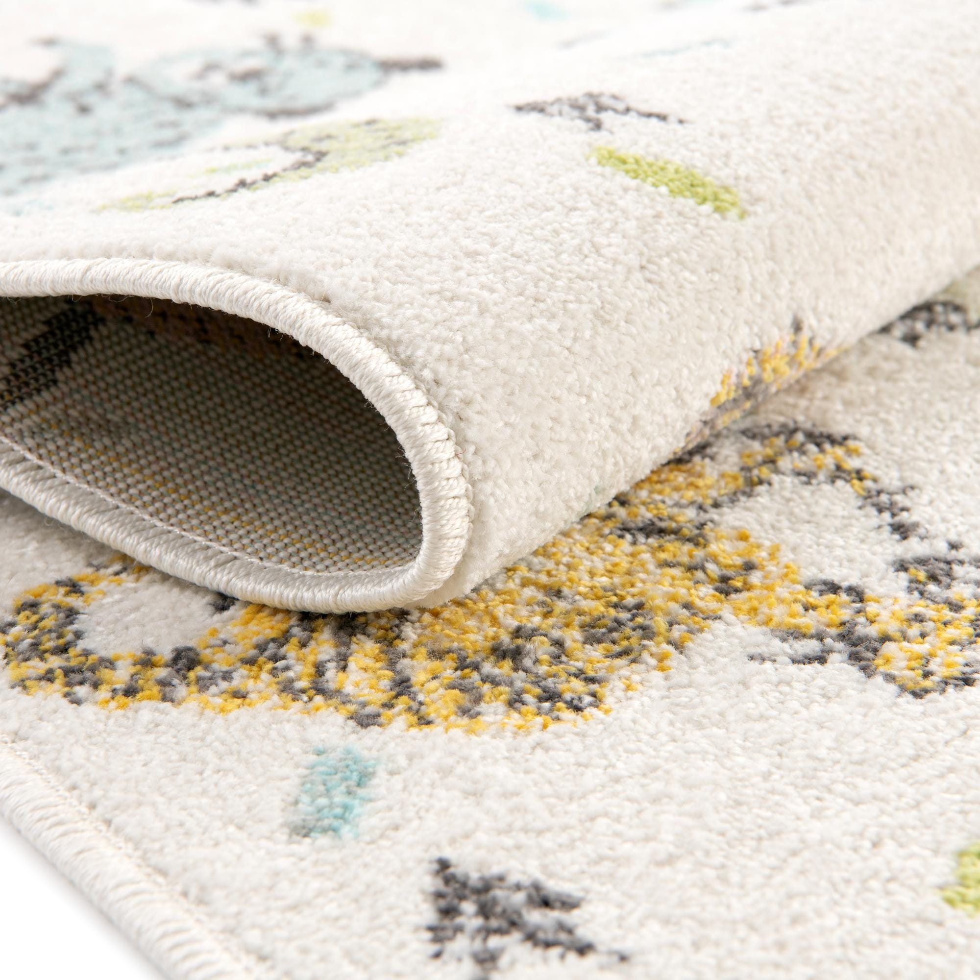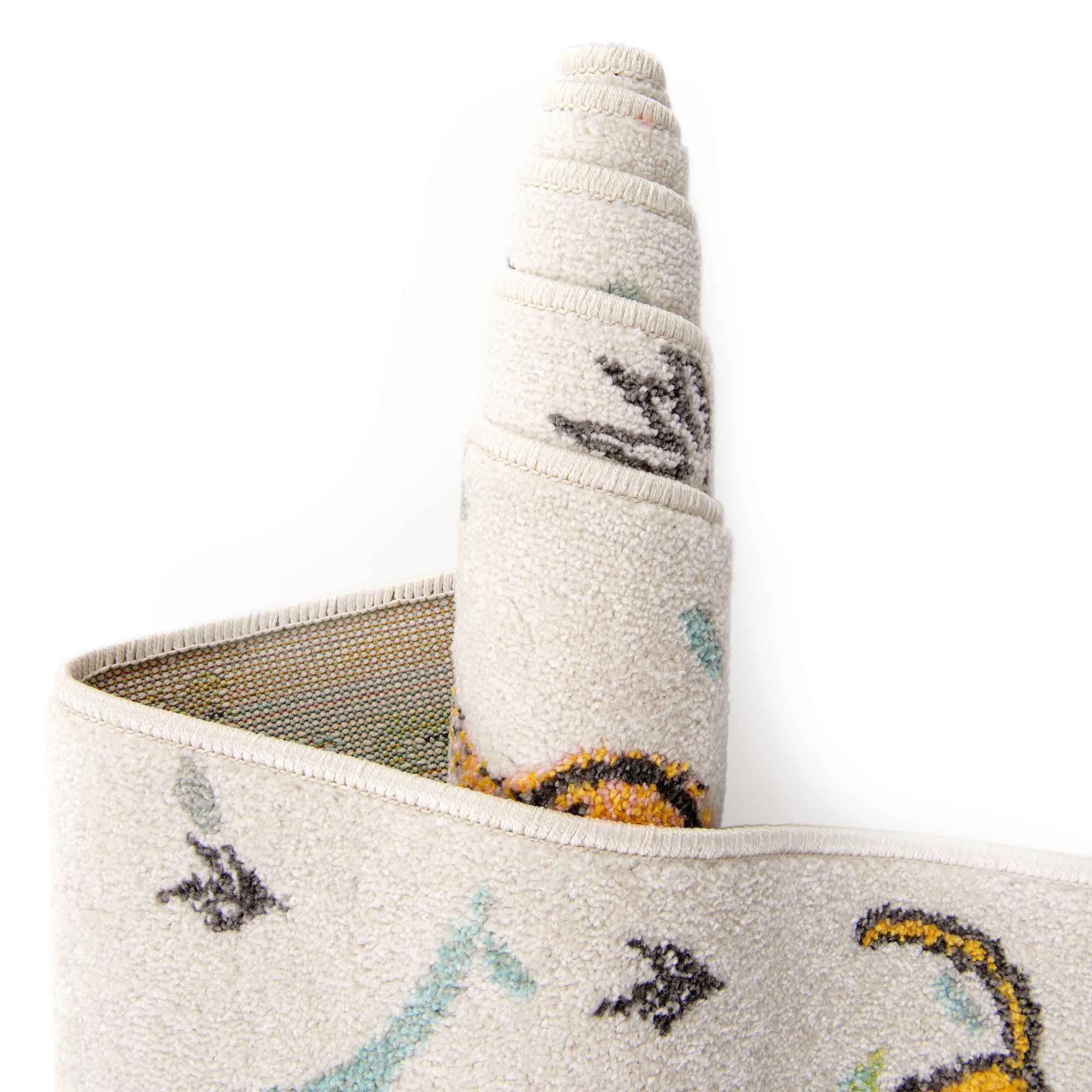 Machine-made from 100% polypropylene, the rug has a low, soft pile and a tightly constructed surface that holds the printed motifs with crisp detail. It works well as an anchor in a nursery or playroom, under a kid-sized table, or layered over wood or laminate flooring in a family space. Pair it with pastel bedding and simple wooden furniture for a Scandinavian-inspired nursery, or combine it with bright accent pillows and storage bins for a lively, eclectic play area.