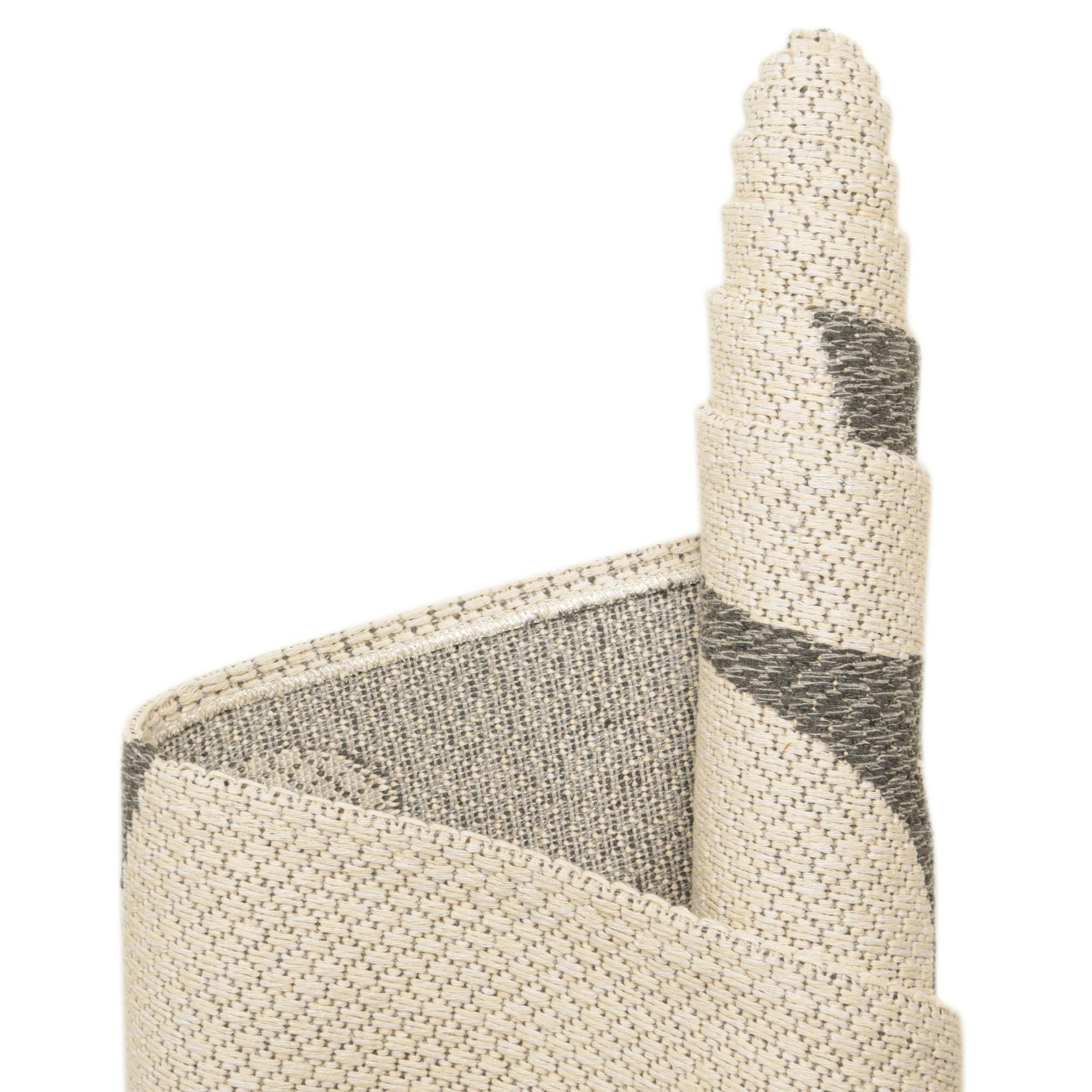 Machine-made of 100% cotton, the rug has a soft, natural hand and a low-profile weave that lies flat beneath furniture. It works well beneath a neutral sofa to introduce pattern without overwhelming the space, under a dining table to add subtle visual interest, or layered in a bedroom to soften wood or tile floors. Pair it with pale woods and linen textiles for a coastal or Scandinavian feel, or combine with charcoal accents and streamlined furniture for a transitional living area.