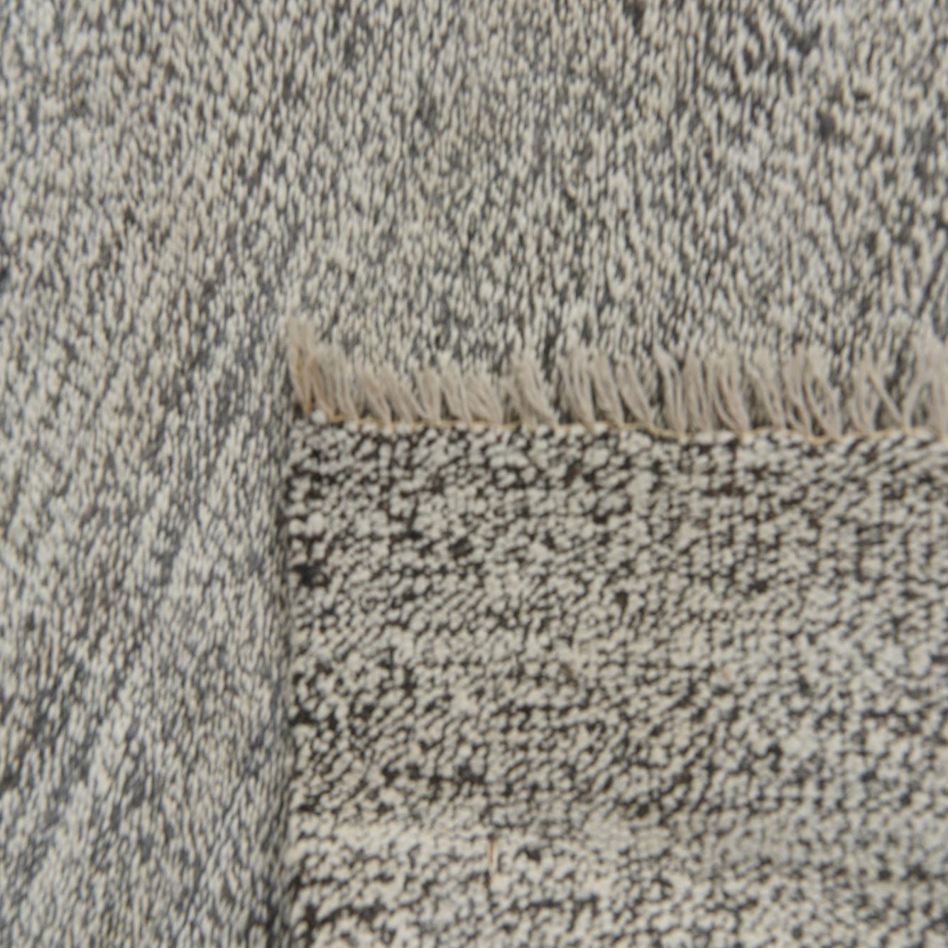 The neutral color palette of ivory and gray allows for seamless integration into various decor schemes, from minimalist and Scandinavian-inspired spaces to more industrially-themed rooms. Its unobtrusive pattern can serve as a backdrop for more vibrant furnishings or as a complement to a monochrome setting. The wool texture provides a comfortable underfoot experience, while the hand-woven construction ensures each piece is unique, with slight variations that add character to the rug. This rug can anchor a living room seating area, complete a serene bedroom environment, or add warmth to a home office.