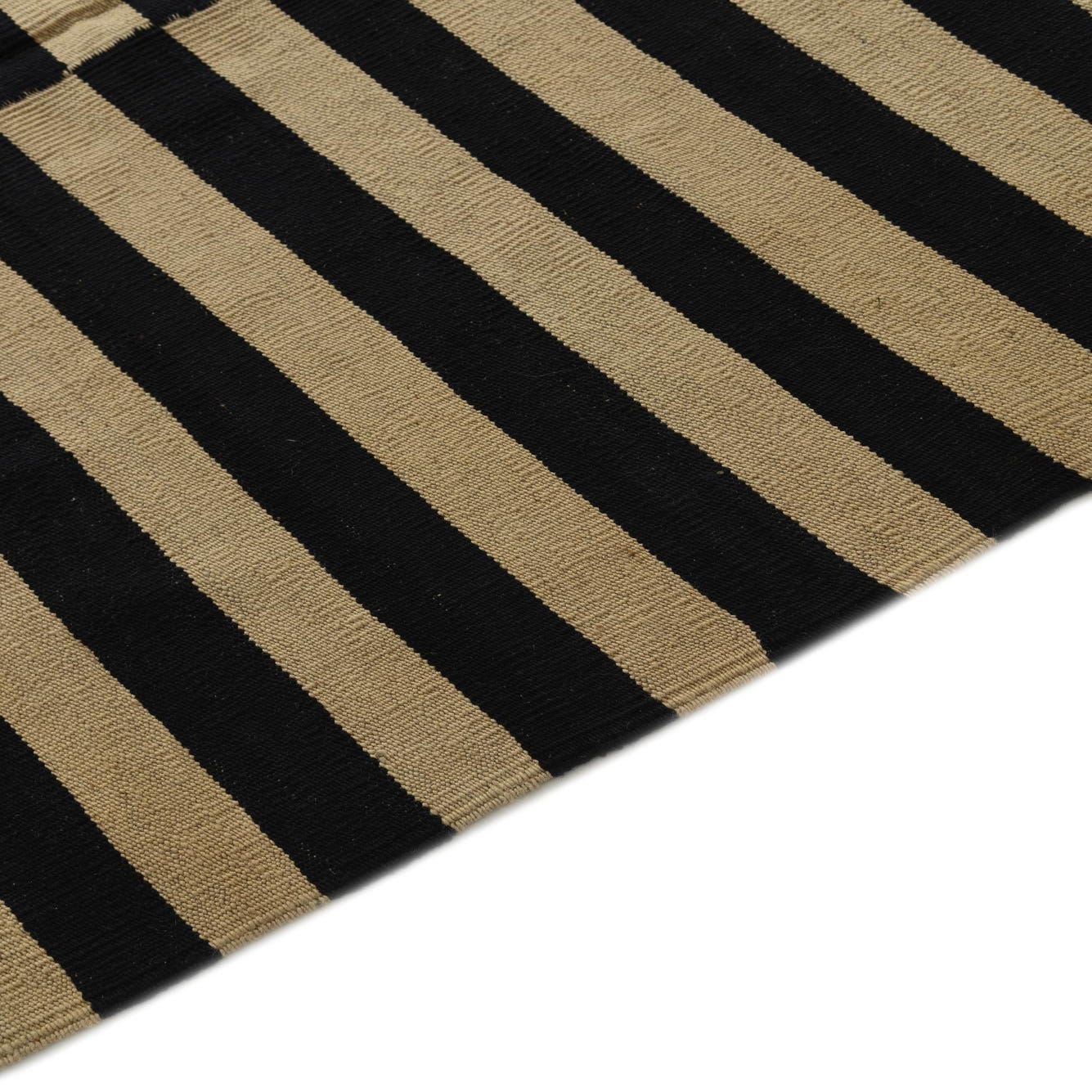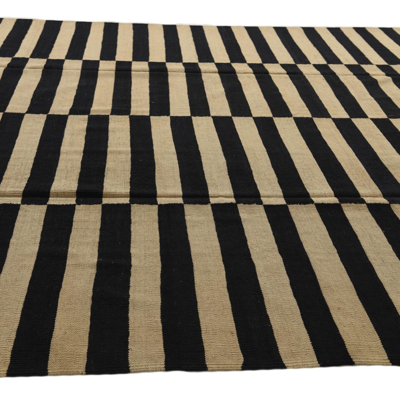 The Kilim Modern collection presents a hand-woven 8x11 rug crafted from 100% wool, combining durability with a soft texture that adds warmth to any room. This piece showcases a series of bold, black stripes set against an ivory background, creating a striking visual contrast that captures attention. The crisp lines and unembellished design lend a contemporary edge, while the flatweave construction contributes to its sleek profile.