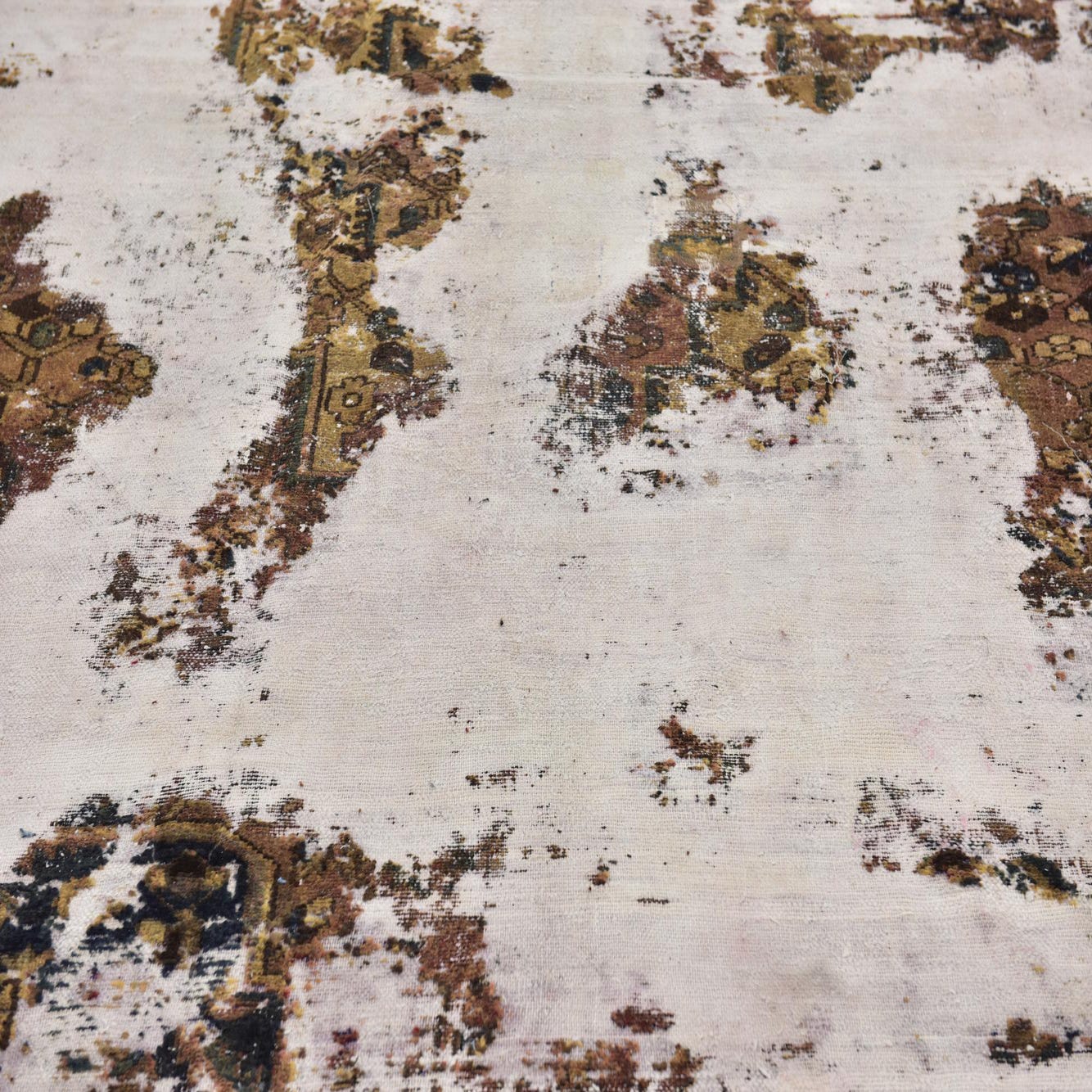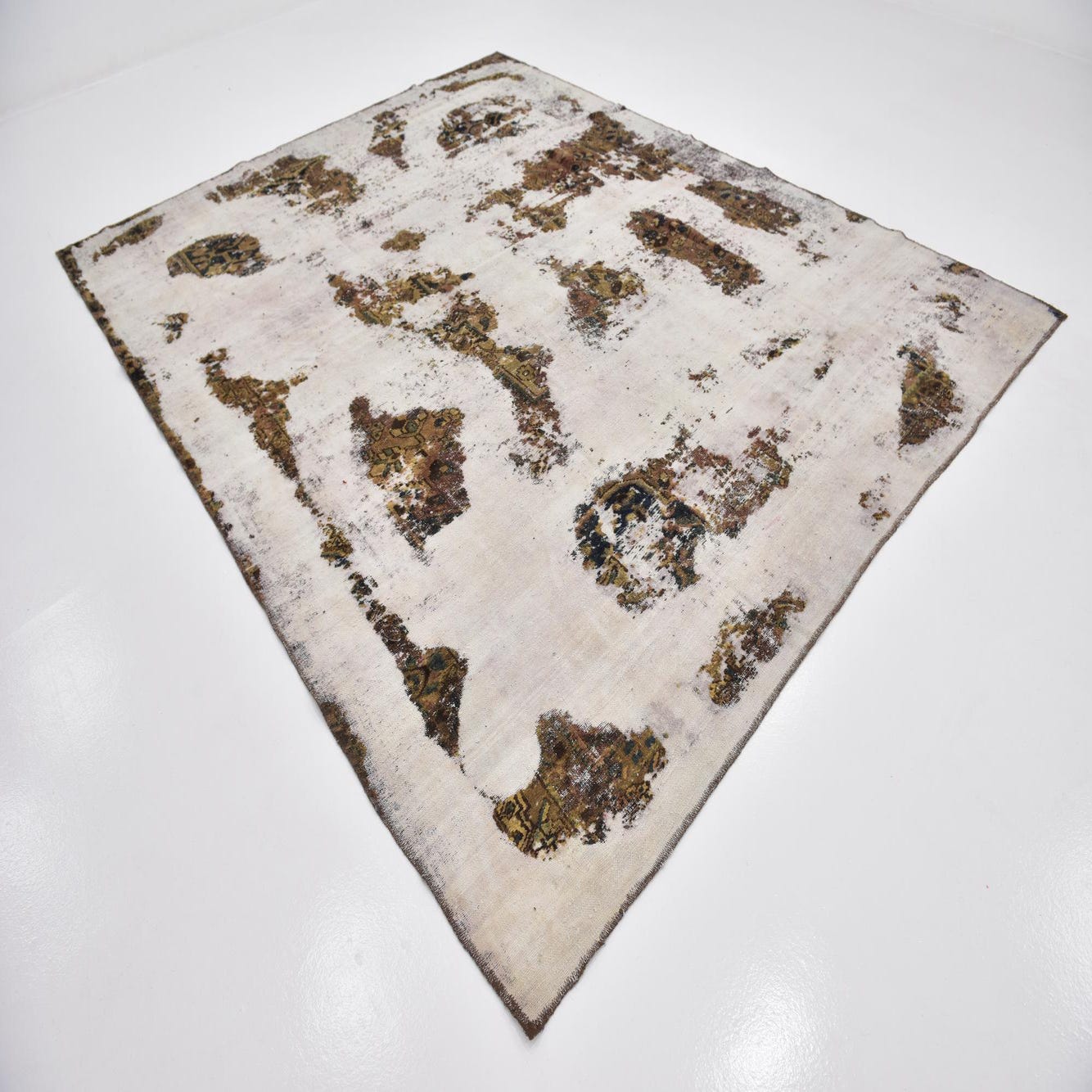 This Persian Ultra Vintage rug is an antique Persian Rug that has been washed, over-dyed, and then shaved down to a low pile. Look at the detail pictures to fully appreciate the uniqueness of this piece.