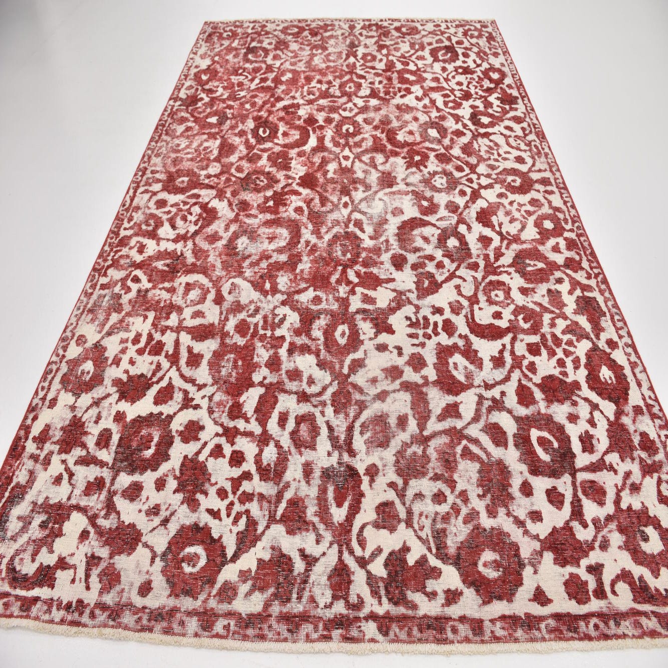 This Persian Ultra Vintage rug is an antique Persian Rug that has been washed, over-dyed, and then shaved down to a low pile. Look at the detail pictures to fully appreciate the uniqueness of this piece.