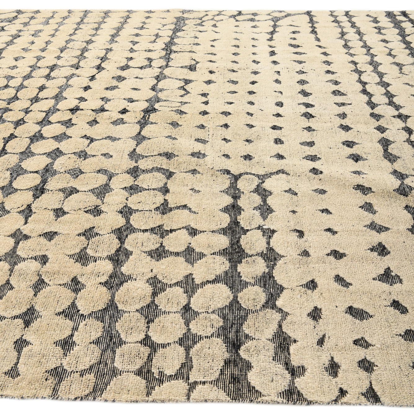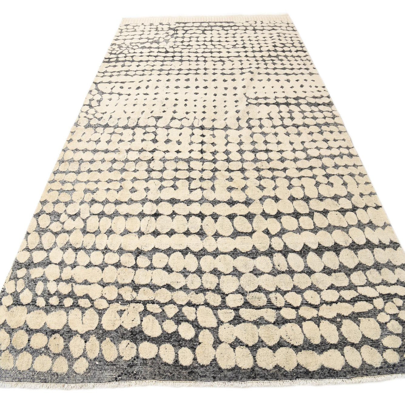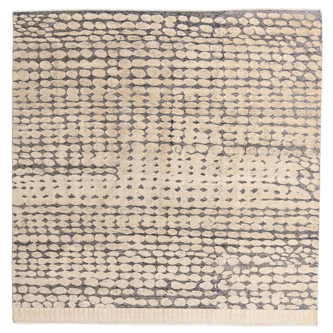 A 9x12 rectangular ivory and gray modern wool rug with an abstract dotted pattern and textured pile.
