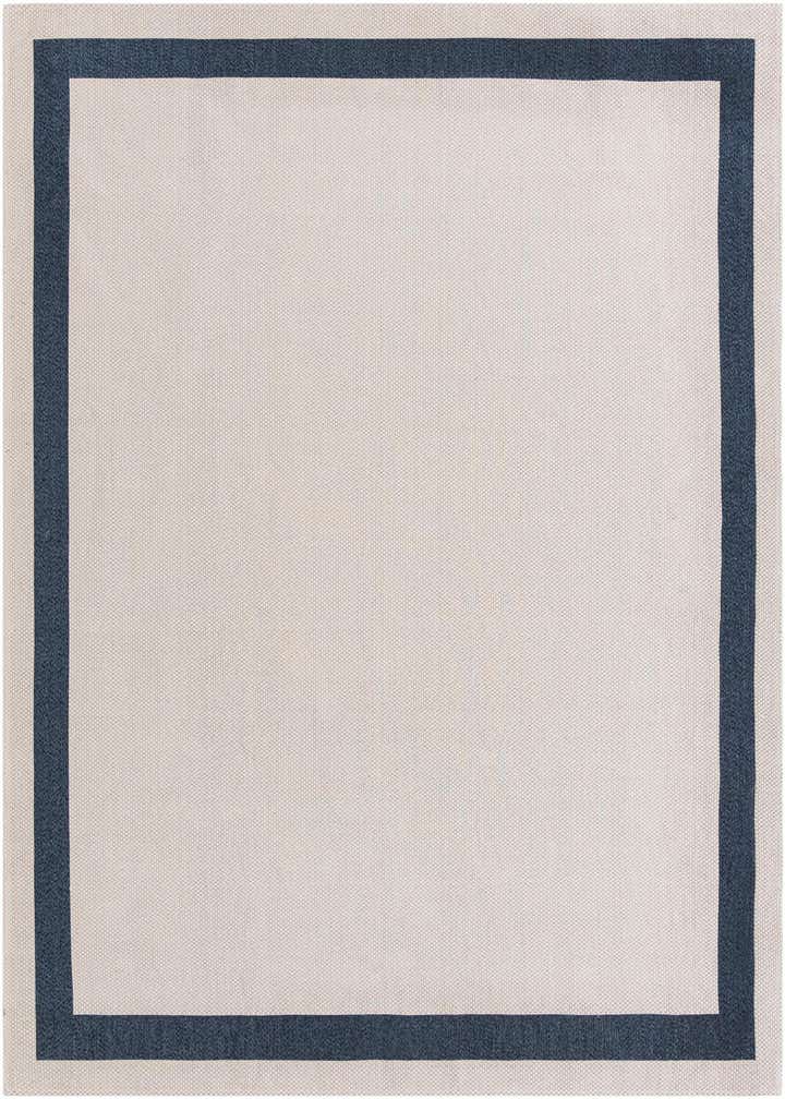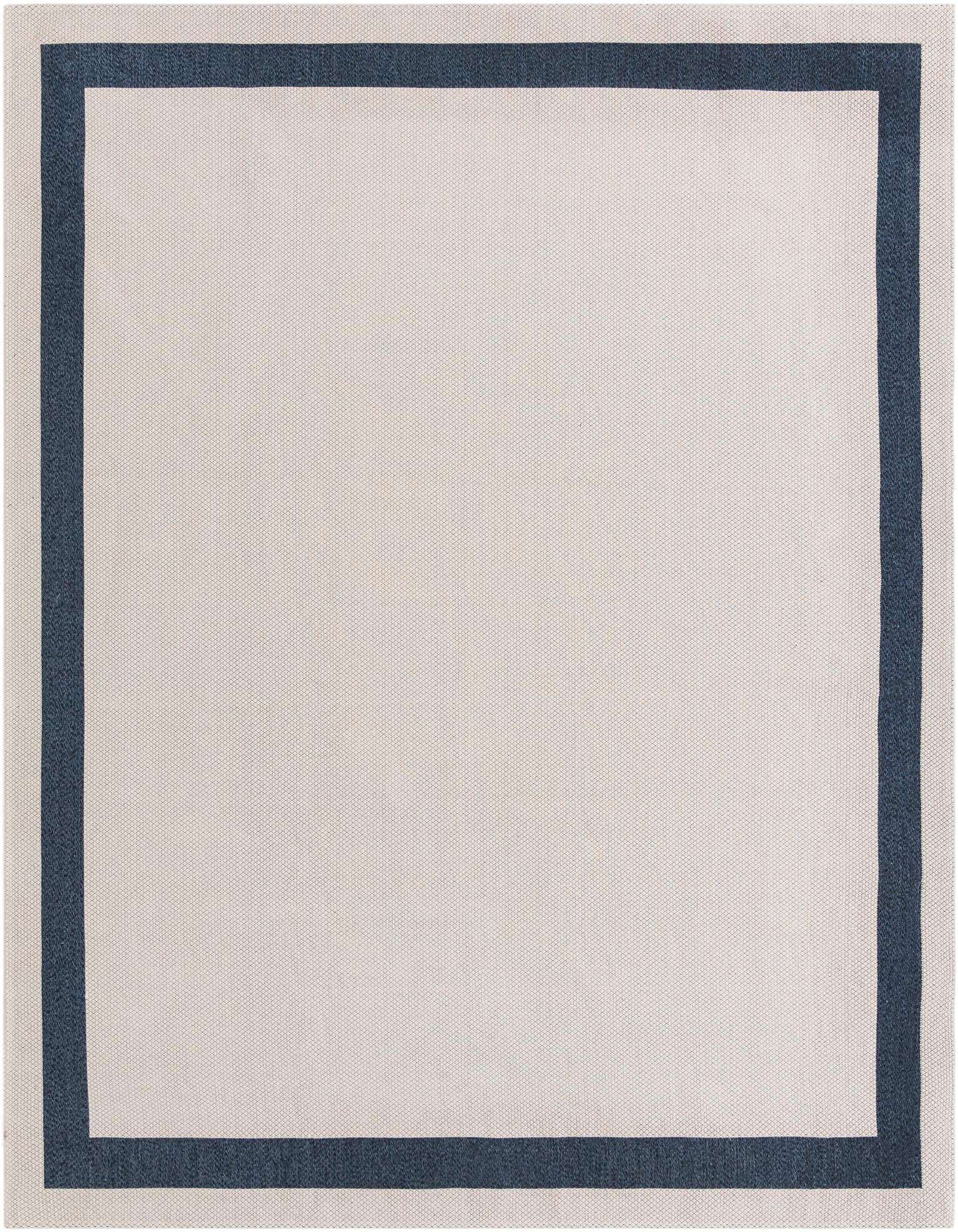 Primary color is Ivory. Colors in this rug include: Ivory, Navy Blue.