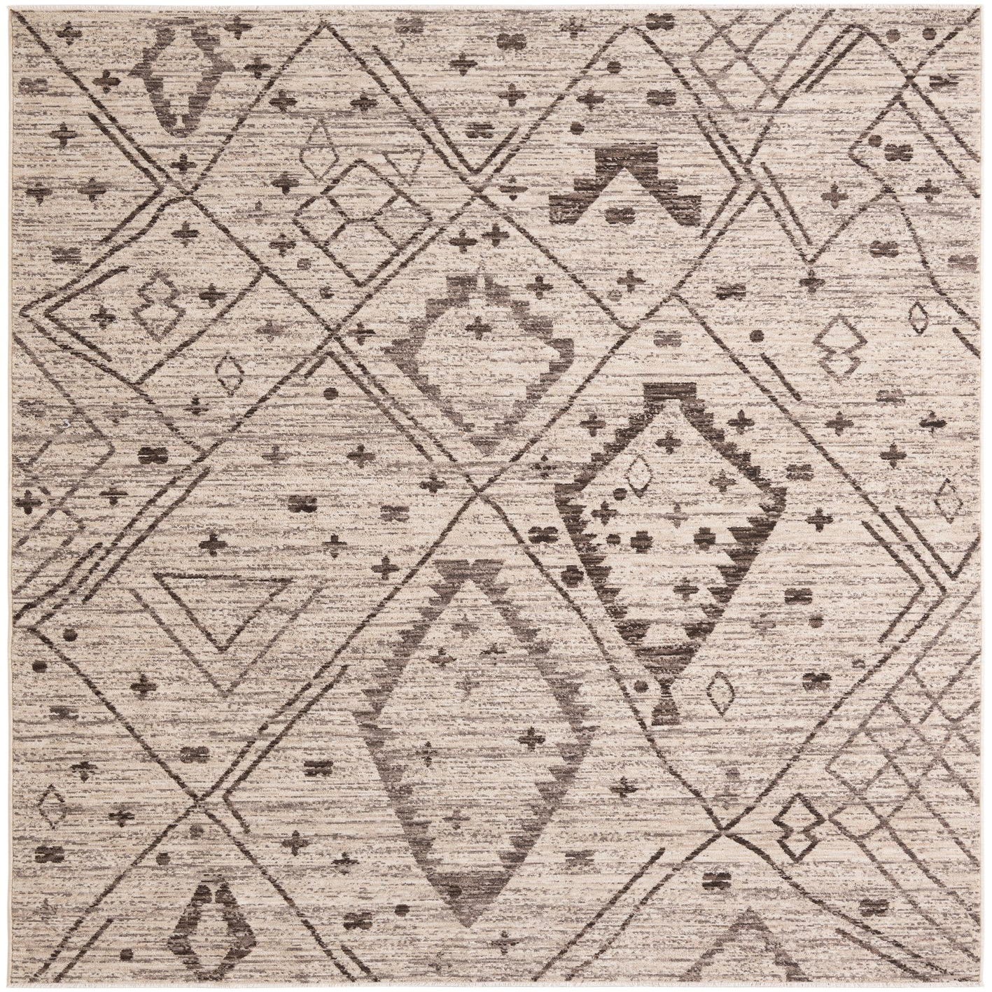 Primary color is Ivory. Colors in this rug include: Ivory, Brown, Light Brown.