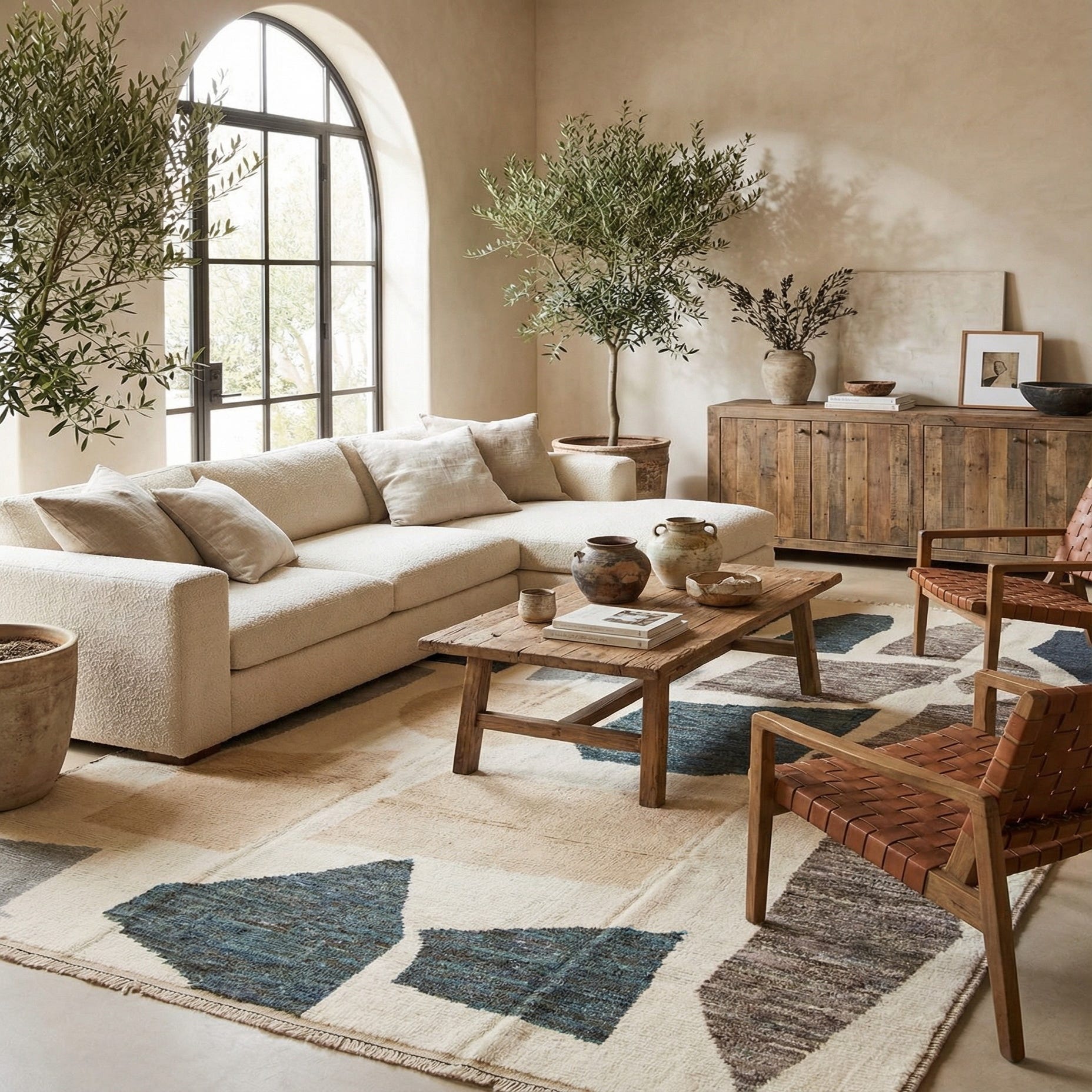 Finished with fringe detailing, this rug anchors a room with its bold yet relaxed aesthetic. It's well-suited for an array of decor scenarios, including contemporary living spaces, minimalistic environments, and eclectic mixes that incorporate global influences. The natural wool and neutral tones would also complement Scandinavian-inspired interiors, providing warmth and a touch of artisan charm.