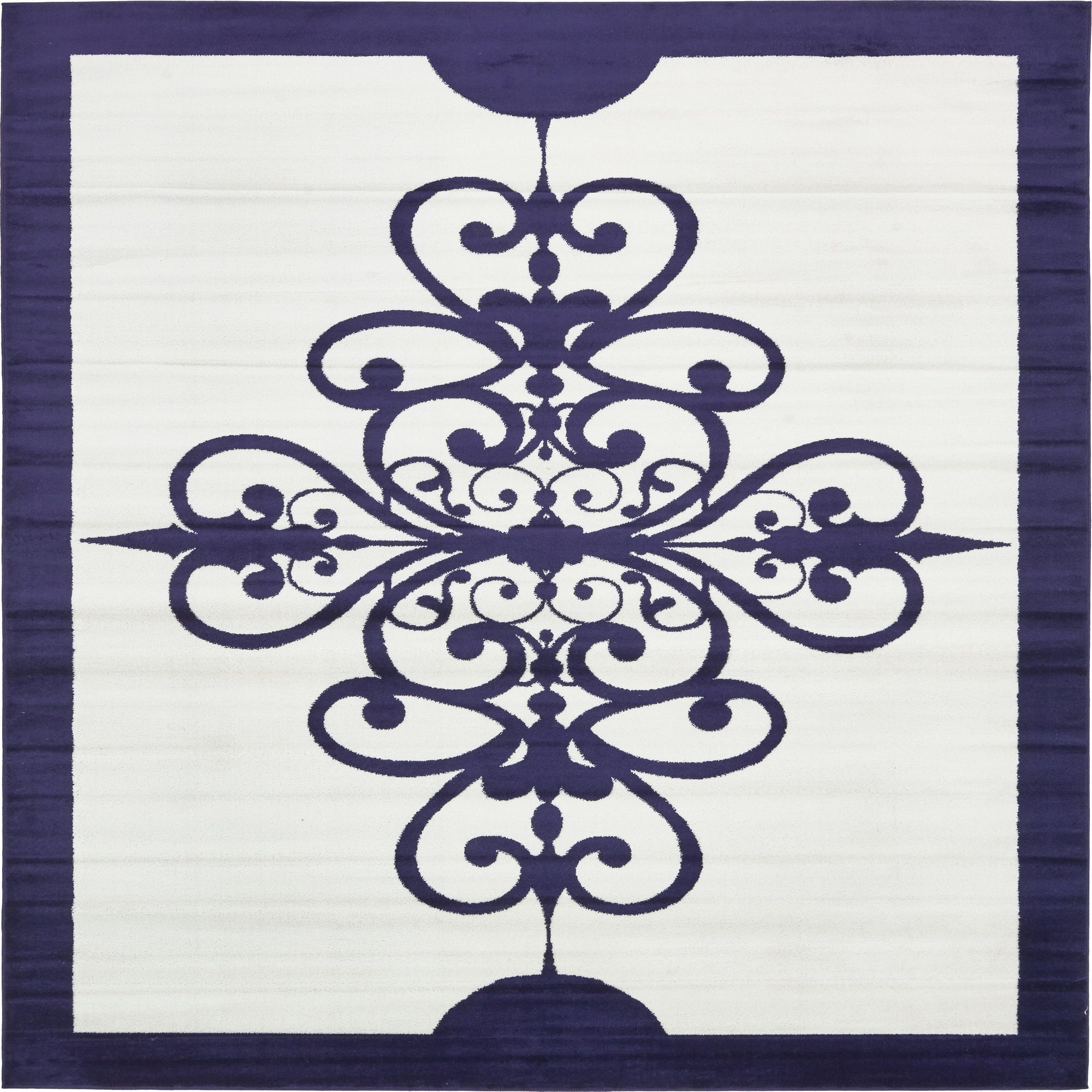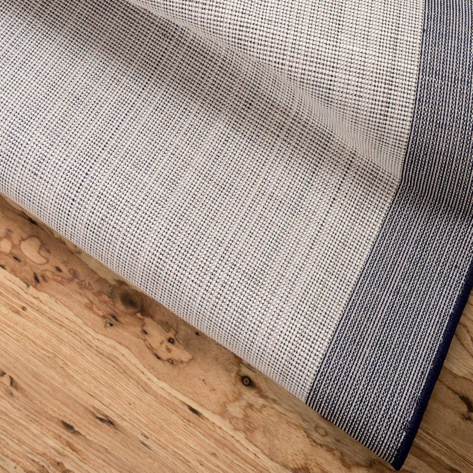 Primary color is Ivory. Colors in this rug include: Ivory, Navy Blue.