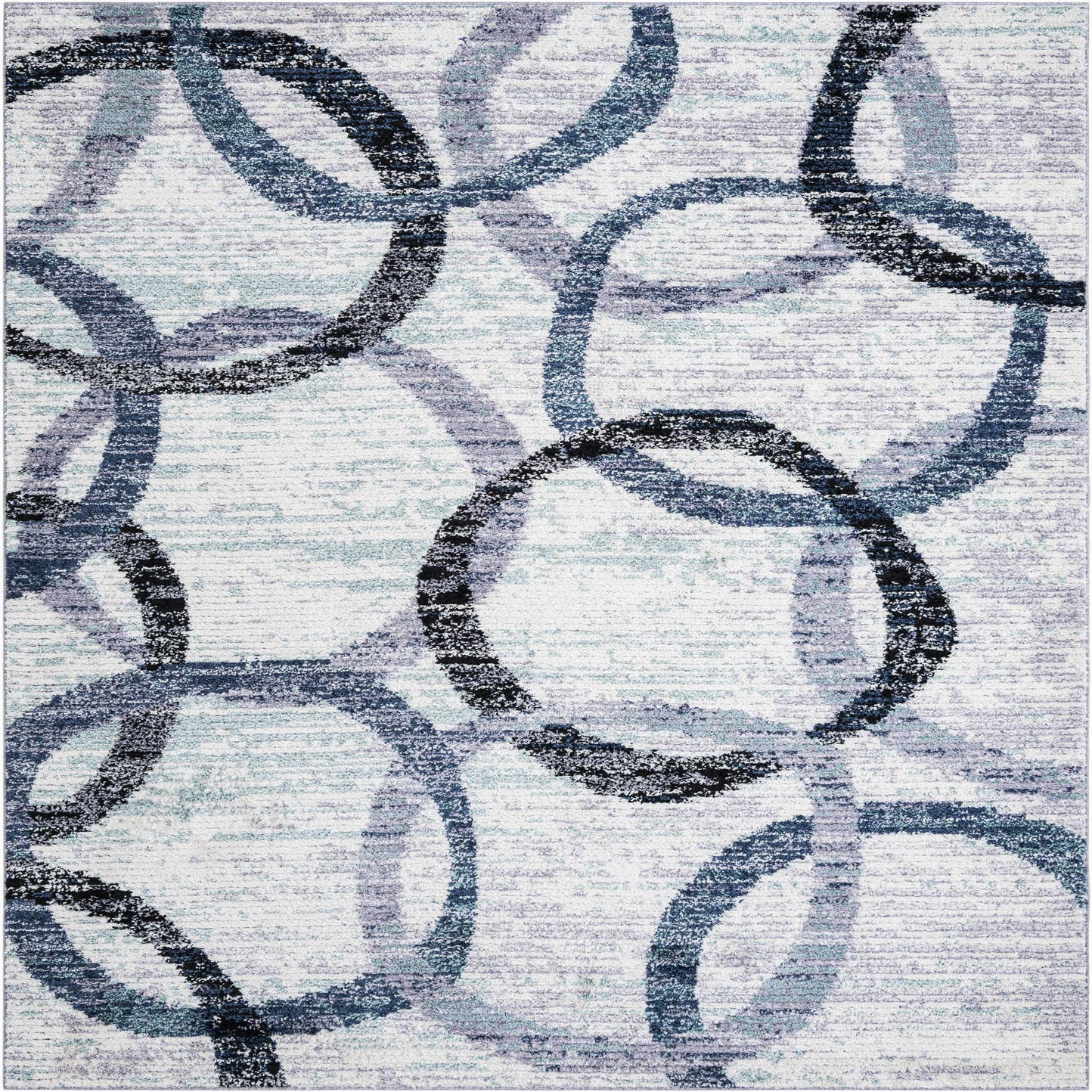 This rug works well in contemporary and transitional interiors where you want a graphic yet approachable focal point. Pair it with a neutral linen sofa and navy accent pillows for a cohesive living room, tuck it beneath a glass- or metal-legged dining table to introduce pattern without overwhelming the space, or use it in a home office or bedroom to bring a cool, coastal-inspired palette into the room. The balanced mix of blues and grays coordinates easily with light woods, chrome, or matte-black finishes.