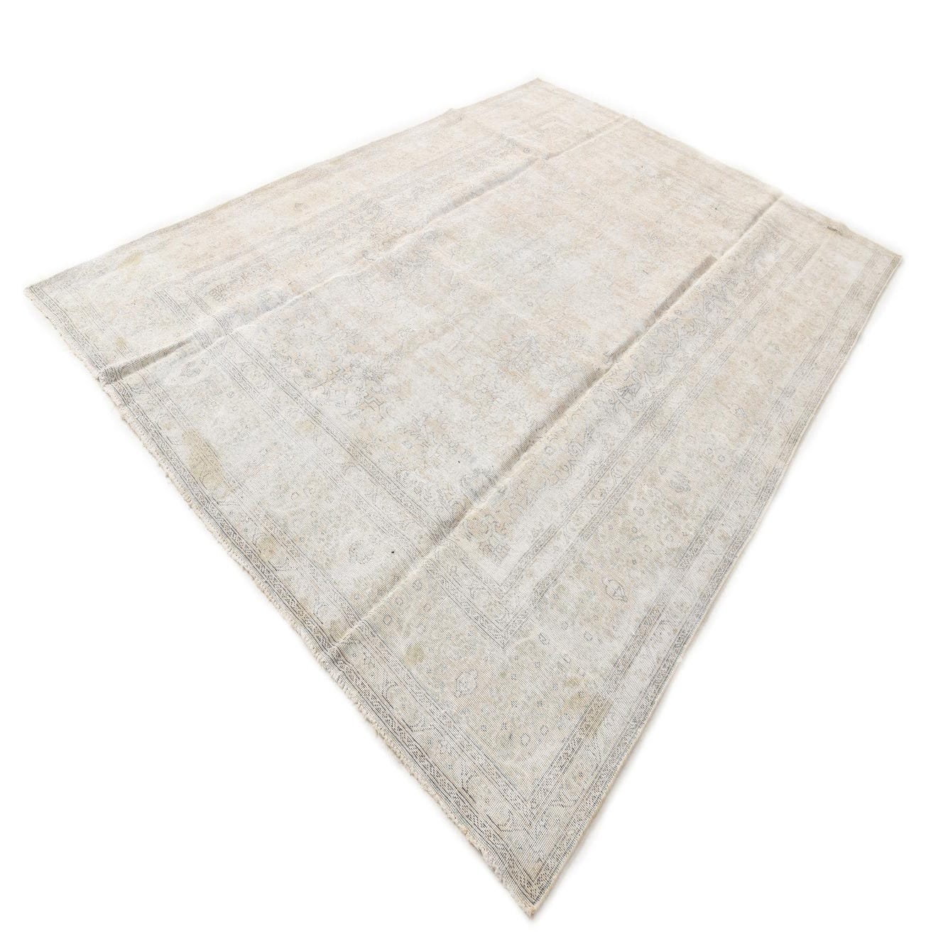 A large 9x12 rectangular Ultra Vintage rug in ivory and cream with a subtle Persian pattern, suitable for a living room.