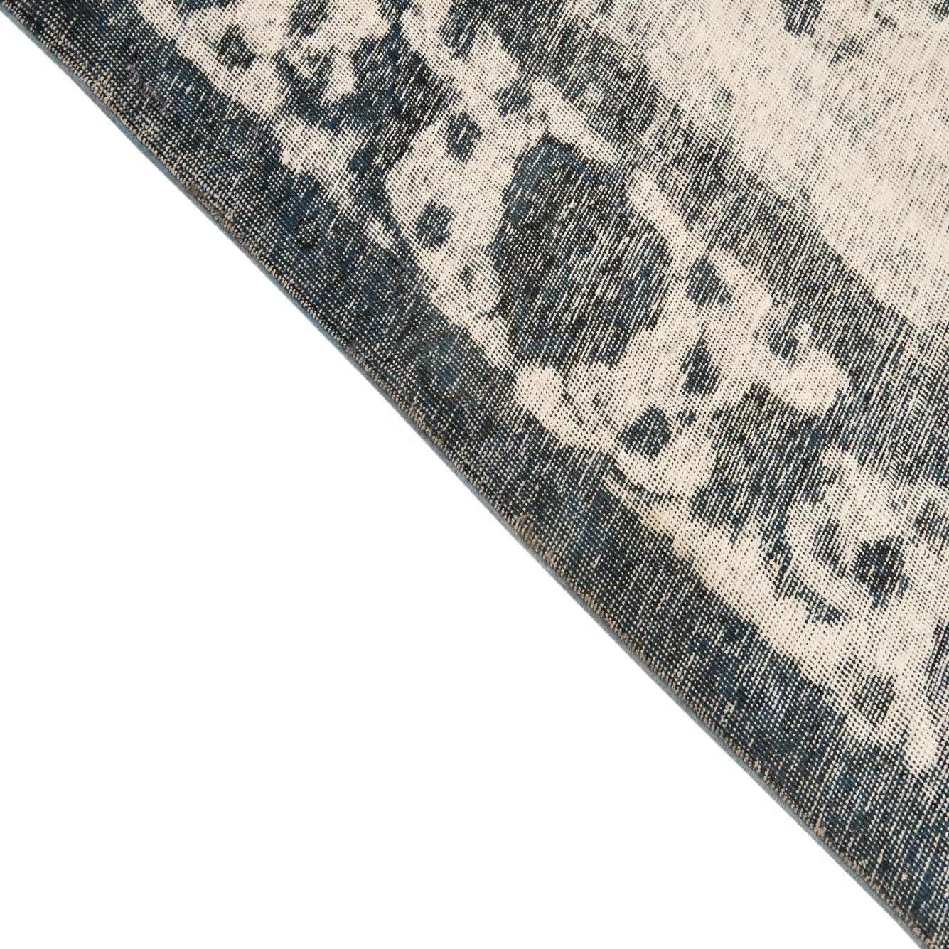 Its pattern features a classic central medallion design, flanked by intricate floral and vine motifs, all of which are subtly distressed to offer a timeworn aesthetic. This lends the rug an heirloom quality, making it appear as though it has been cherished for generations.