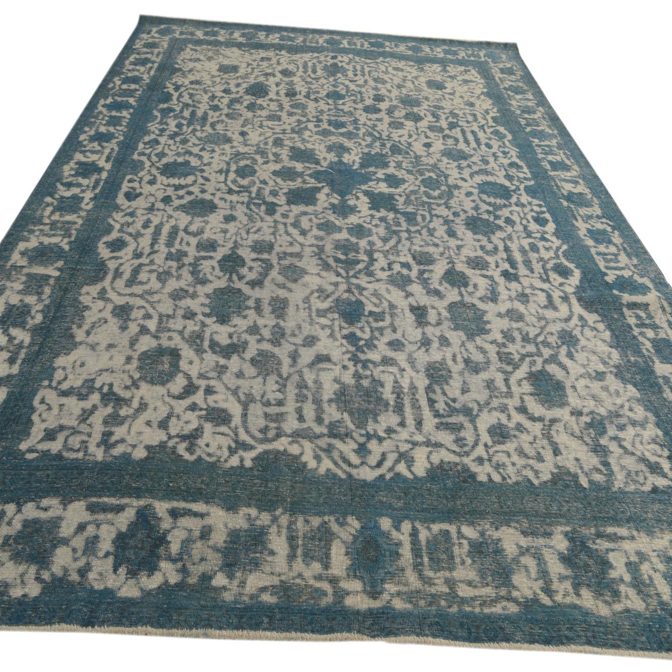 This Persian Ultra Vintage rug is an antique Persian Rug that has been washed, over-dyed, and then shaved down to a low pile. Look at the detail pictures to fully appreciate the uniqueness of this piece.