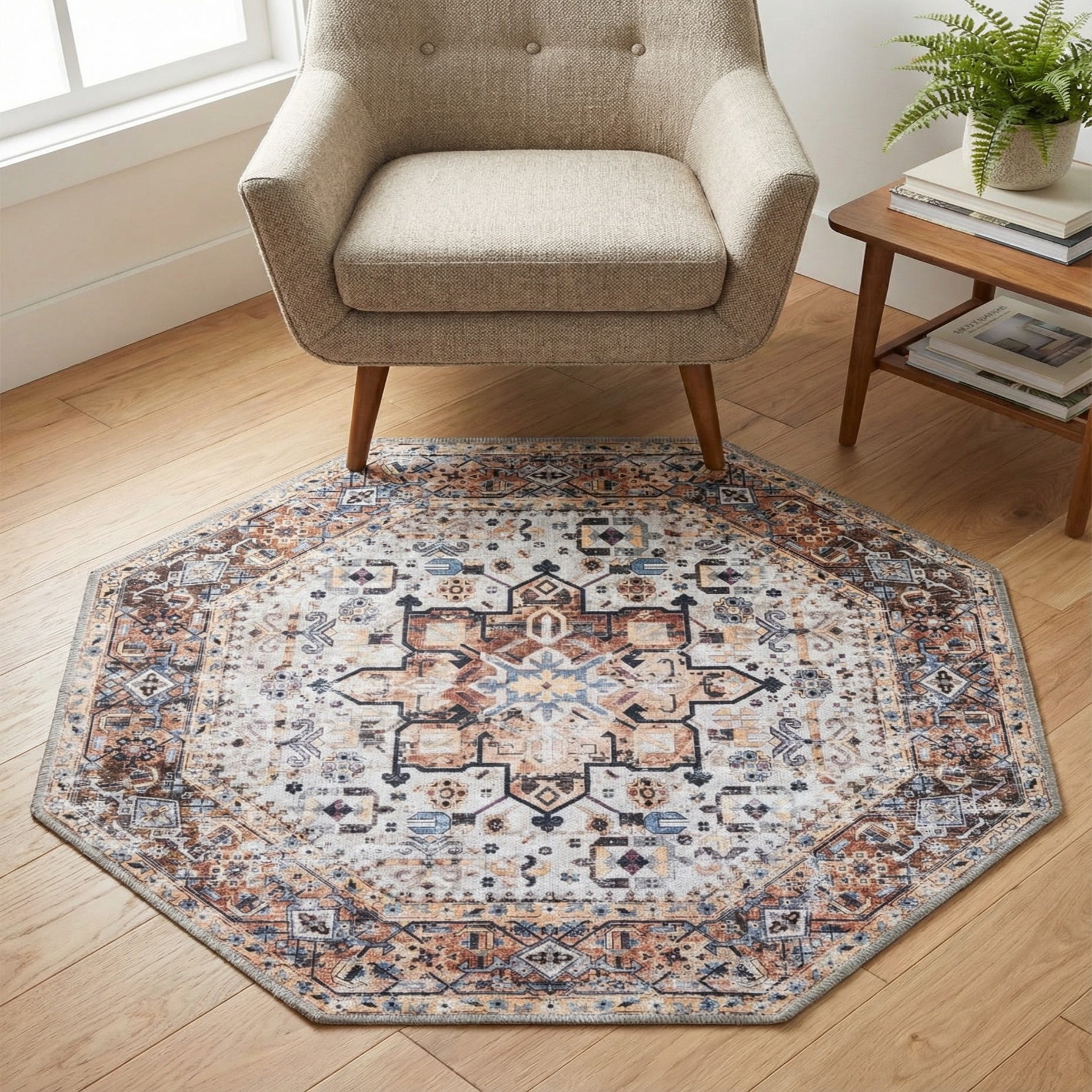 3' 3 x 3' 3 Washable Yara Octagon Rug
