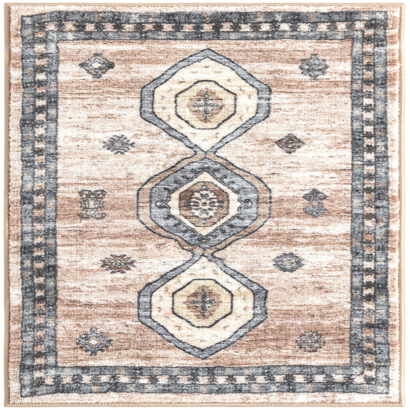 This rug suits compact spaces where a touch of pattern and warmth is needed — place it in an entryway, at the foot of a bed, or in front of a reading chair to anchor a small vignette. It pairs nicely with weathered wood and leather, neutral upholstery, and muted metallic accents, and complements transitional, modern farmhouse, or softly traditional interiors.