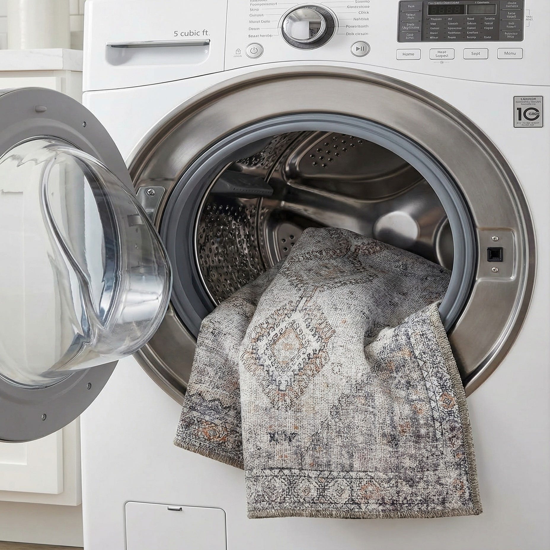 Machine-made from polyester and chenille, the surface has a gentle, velvety hand from the chenille yarns with enough structure from the polyester to hold the pattern definition. It lies low to the floor with a plush-but-flat feel underfoot, making it easy to place in high-traffic spots. Ideal for grounding a cozy reading nook, adding softness beside a bed, or brightening an entryway or small sitting area, this rug layers well over wood or tile and complements contemporary, transitional, or softly rustic interiors.