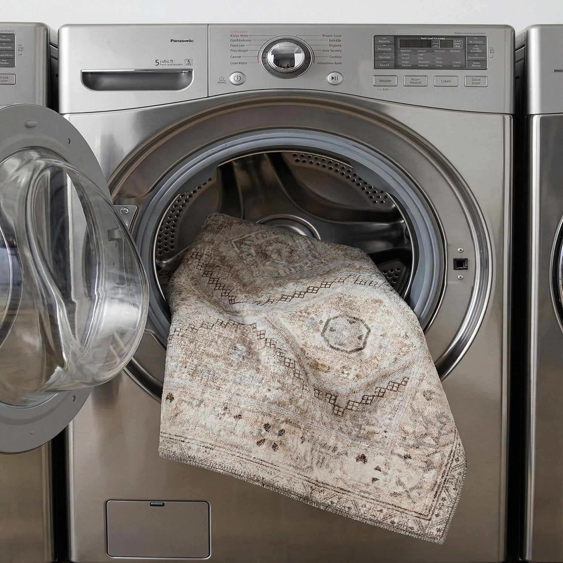 The polyester and chenille blend gives the surface a soft, slightly plush hand with a gentle luster, and the machine-made construction provides an even, low-profile texture that sits neatly under furniture. Place it beneath a sofa to anchor a neutral living room, layer it under a casual dining table, or set it at the foot of a bed to add warmth to pale wood floors. Pair with warm wood tones, linen upholstery or leather seating and textured throws; matte metal or soft brass accents will echo the brown highlights without overpowering the light ivory-and-beige field.