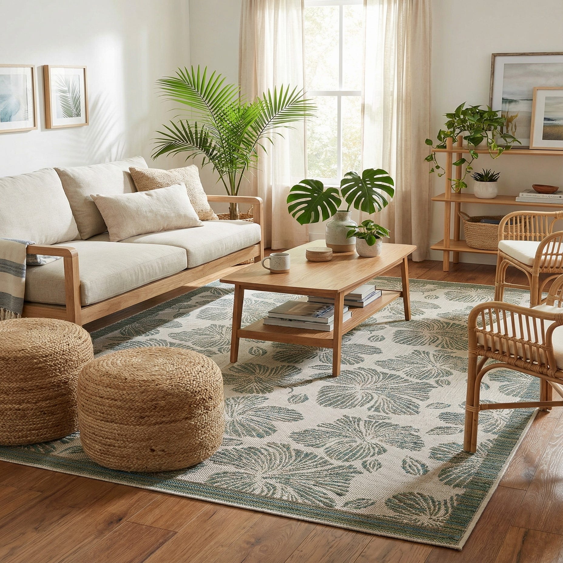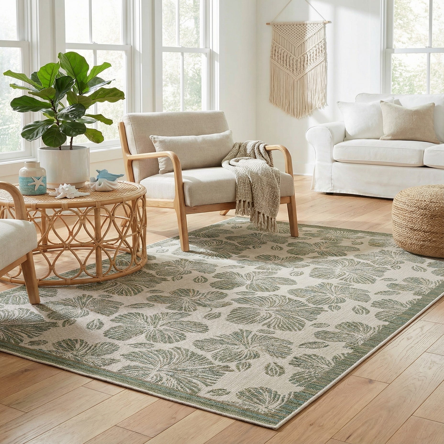Thanks to its shed-free nature, this rug maintains a tidy appearance without the need for frequent cleaning. Its design and coloration enable it to seamlessly integrate with both contemporary and traditional outdoor settings, including patios, decks, sunrooms, and indoor areas with a casual theme. Also suitable for indoor environments, it can add a refreshing element to a kitchen, dining area, or living space that embraces indoor-outdoor living. With its resilience against the elements and ability to withstand the challenges posed by pets and everyday use, this rug is both a practical and stylish choice for various home interiors and exteriors.