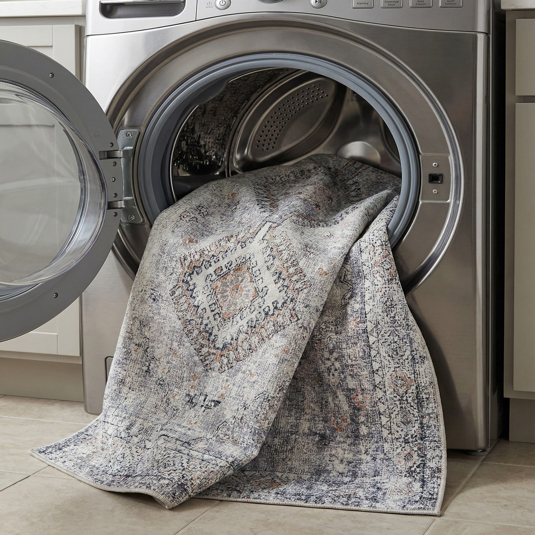 Machine made from polyester and chenille, the construction balances a soft, velvety hand with stable surface structure. Running your hand across the pile reveals the chenille’s plush texture against the smoother polyester areas, offering both visual depth and a comfortable underfoot feel. Place this rug beneath a living room seating group to soften hardwood floors, anchor a bedroom ensemble for a calm, layered look, or use it in a home office to introduce subtle pattern and warmth while maintaining a neutral scheme. It pairs well with light wood tones, soft grays, and warm metallic accents for an understated, cohesive interior.