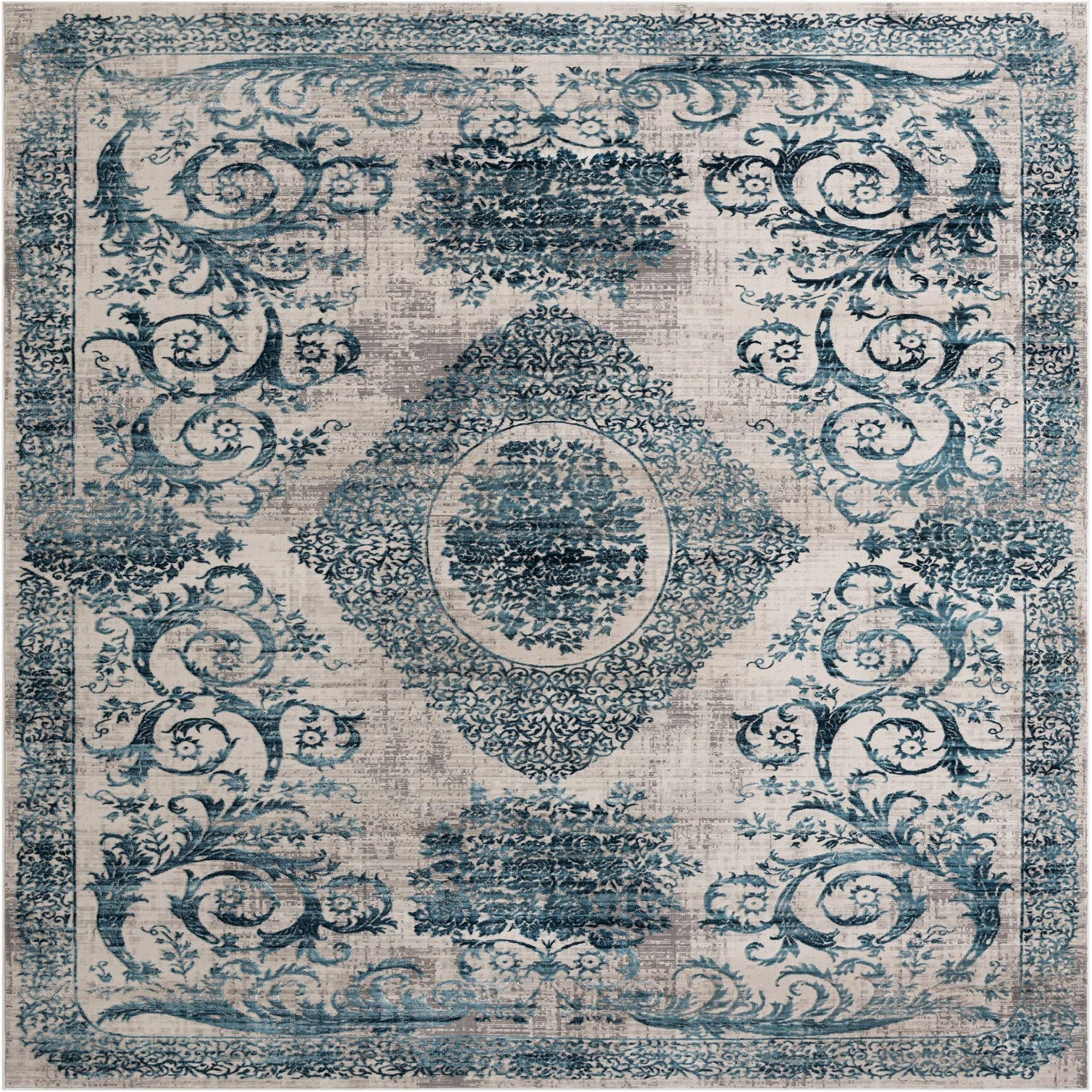 Primary color is Ivory and Blue. Colors in this rug include: Ivory and Blue, Gray.