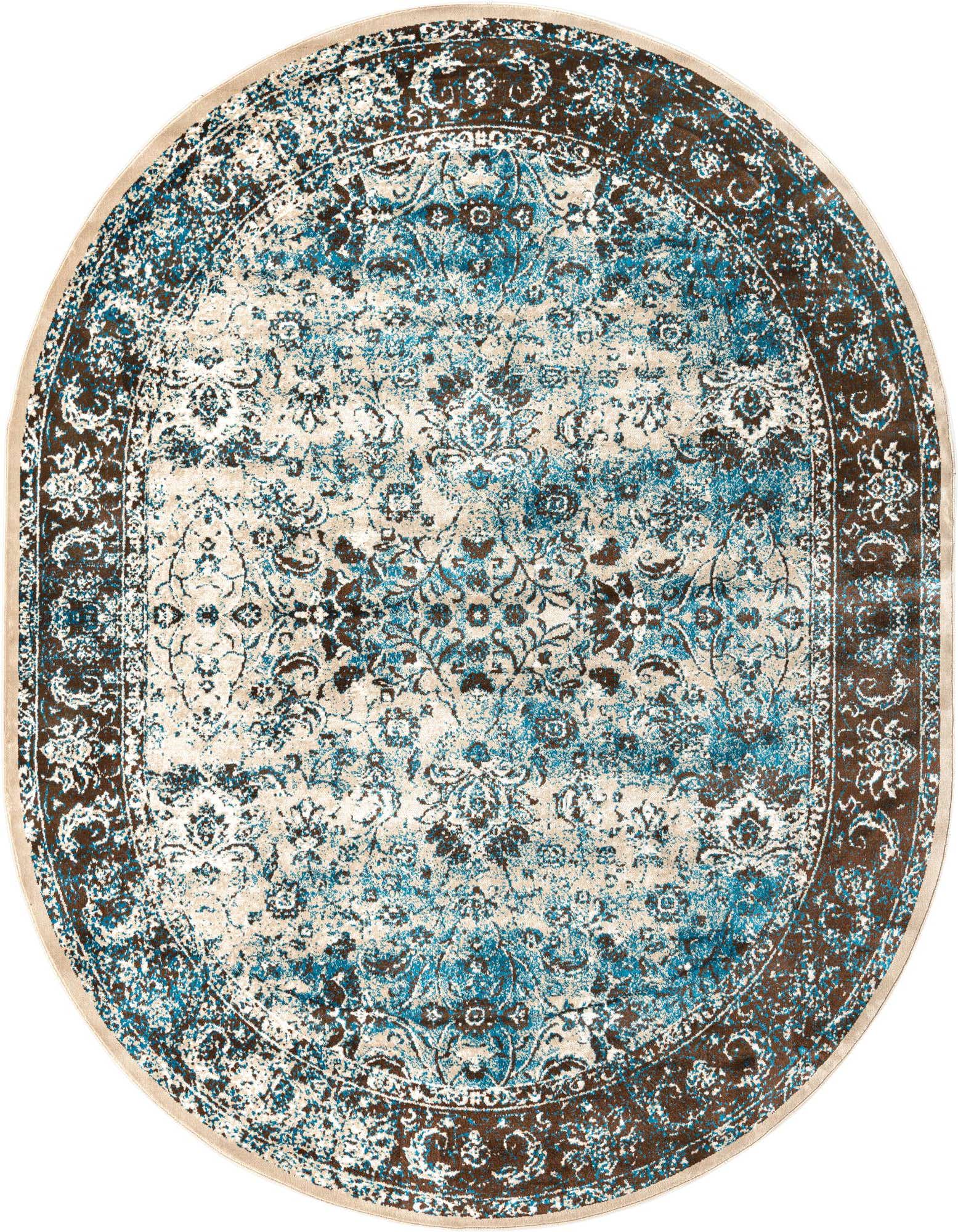 Primary color is Ivory and Blue. Colors in this rug include: Ivory and Blue, Brown, Cream, Ivory.