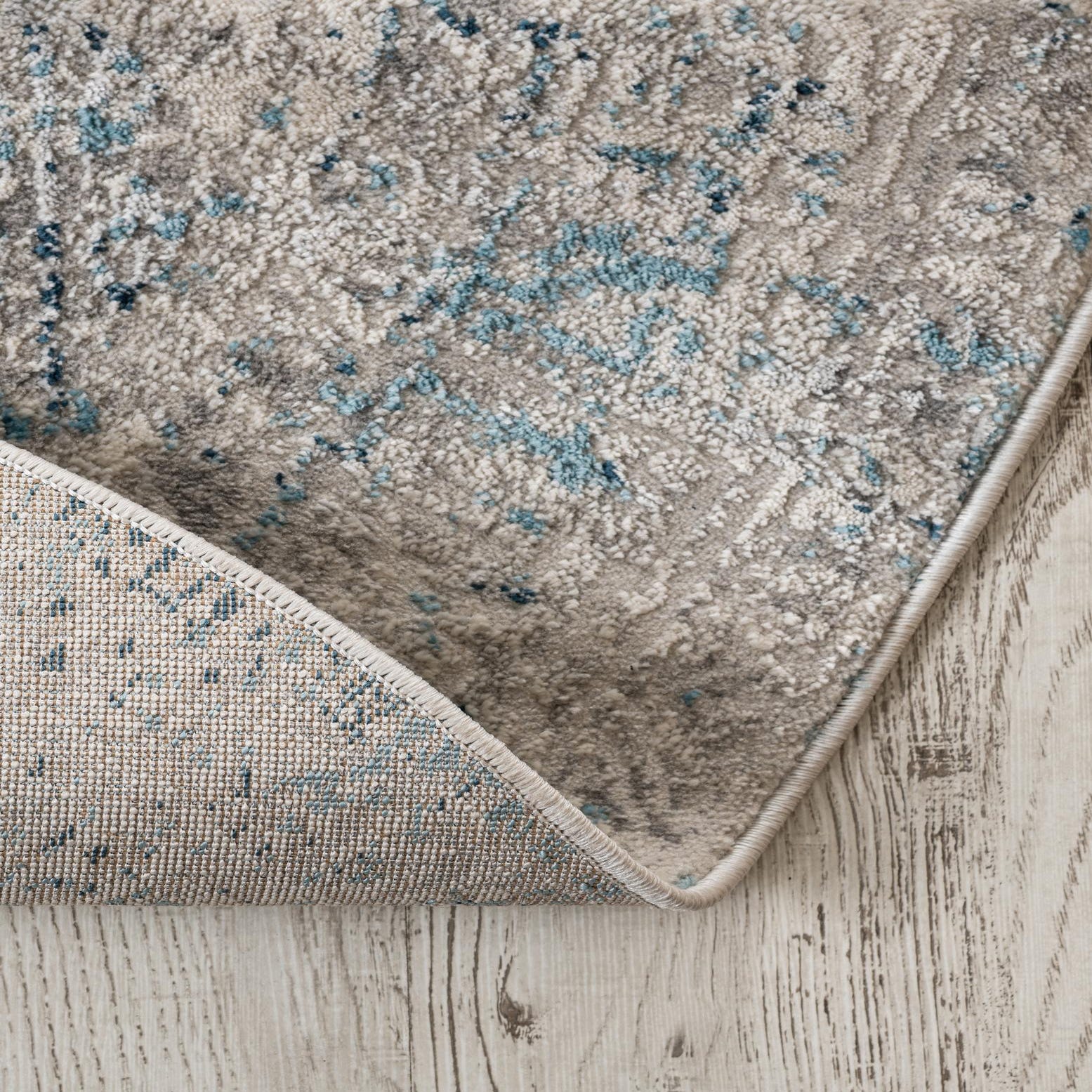 Primary color is Ivory and Blue. Colors in this rug include: Ivory and Blue, Gray.
