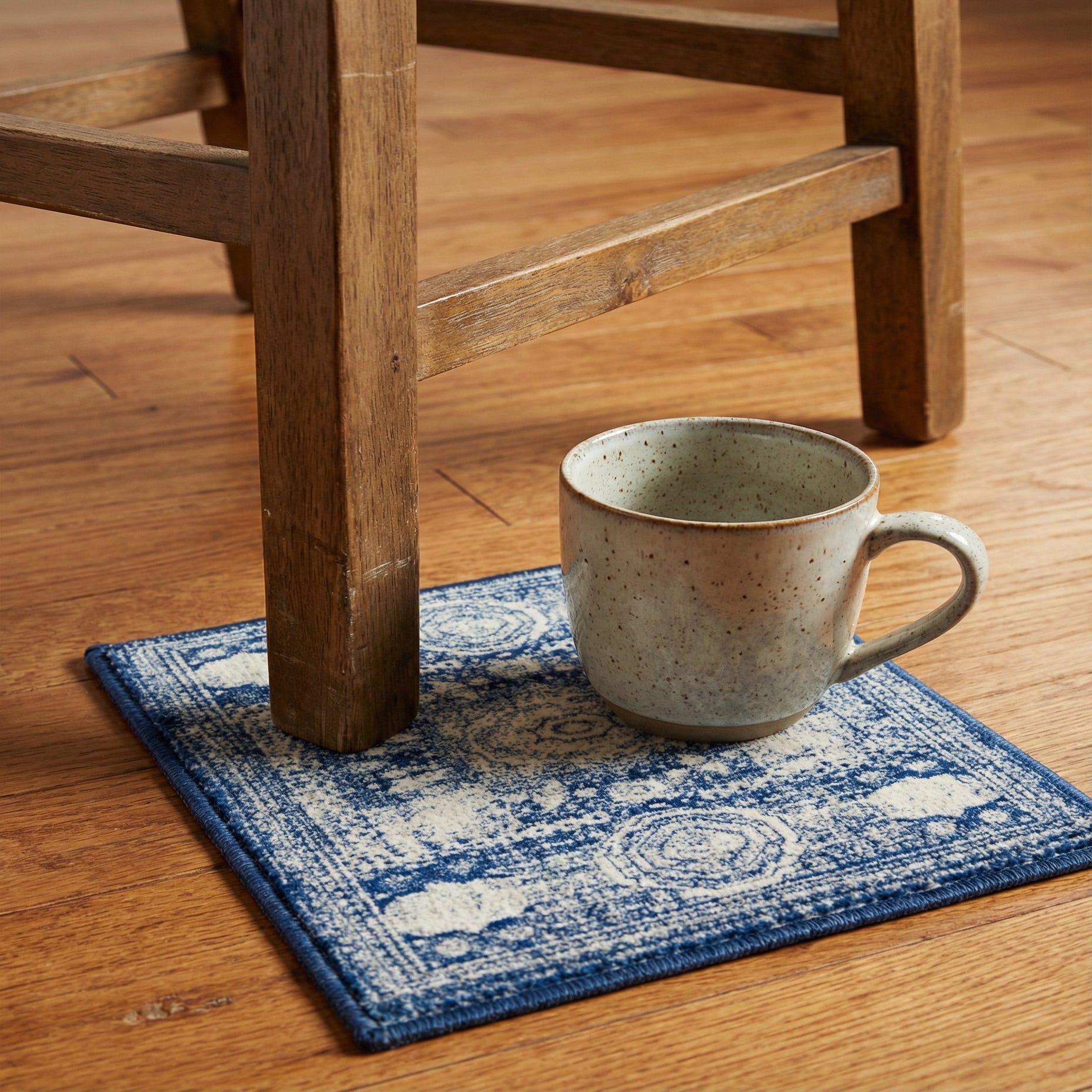 Pair this rug with relaxed, coastal or transitional interiors—think white slipcovered sofas, natural oak tables, and navy accents for a crisp, layered look. It also complements modern farmhouse or cottage rooms where a worn, classic pattern adds visual interest without overpowering other elements. Use it to anchor a seating area, soften a bedroom, or add character to an entry or hallway; the durable polypropylene construction makes it suited to both casual family spaces and light-traffic entertaining areas.