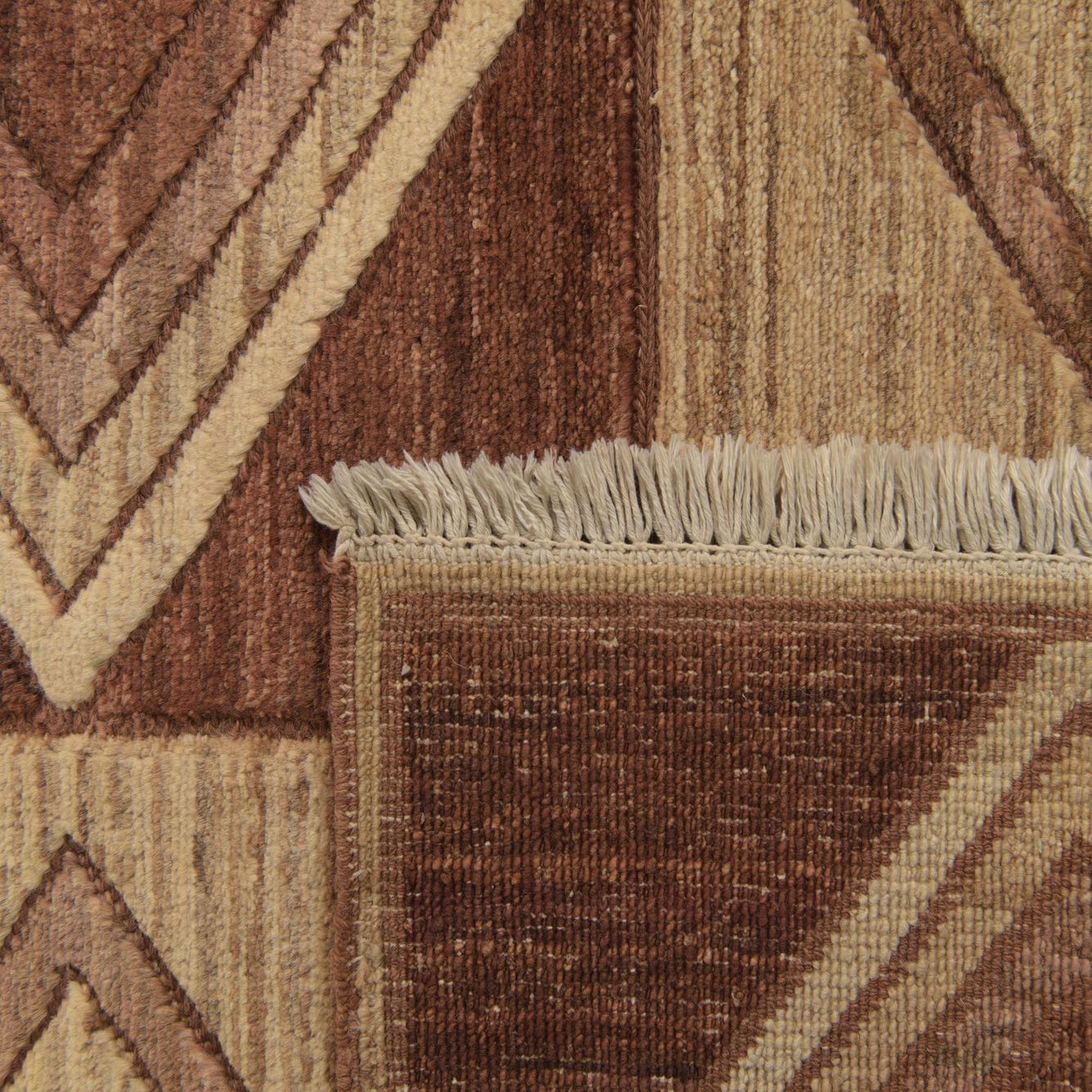 From our Modern Ziegler collection, this hand-knotted rug is an embodiment of understated elegance, crafted using 100% wool. The design features a symmetrical array of geometric diamonds in rich shades of brown set against a warm ivory backdrop, creating a balanced and harmonious visual rhythm. Measuring 9x11, the piece has a substantial presence, characterised by a distinct clarity of pattern and color.