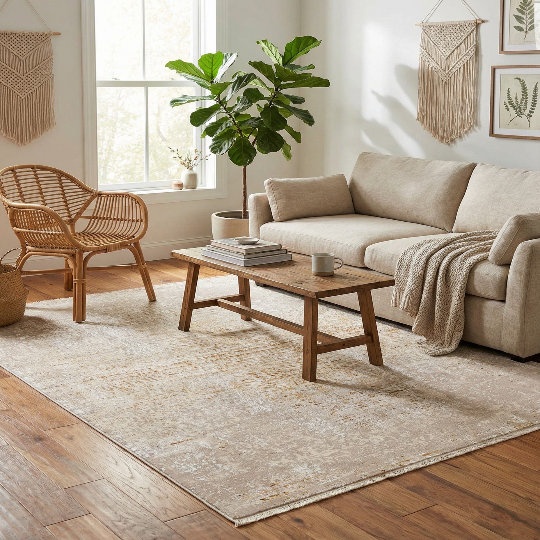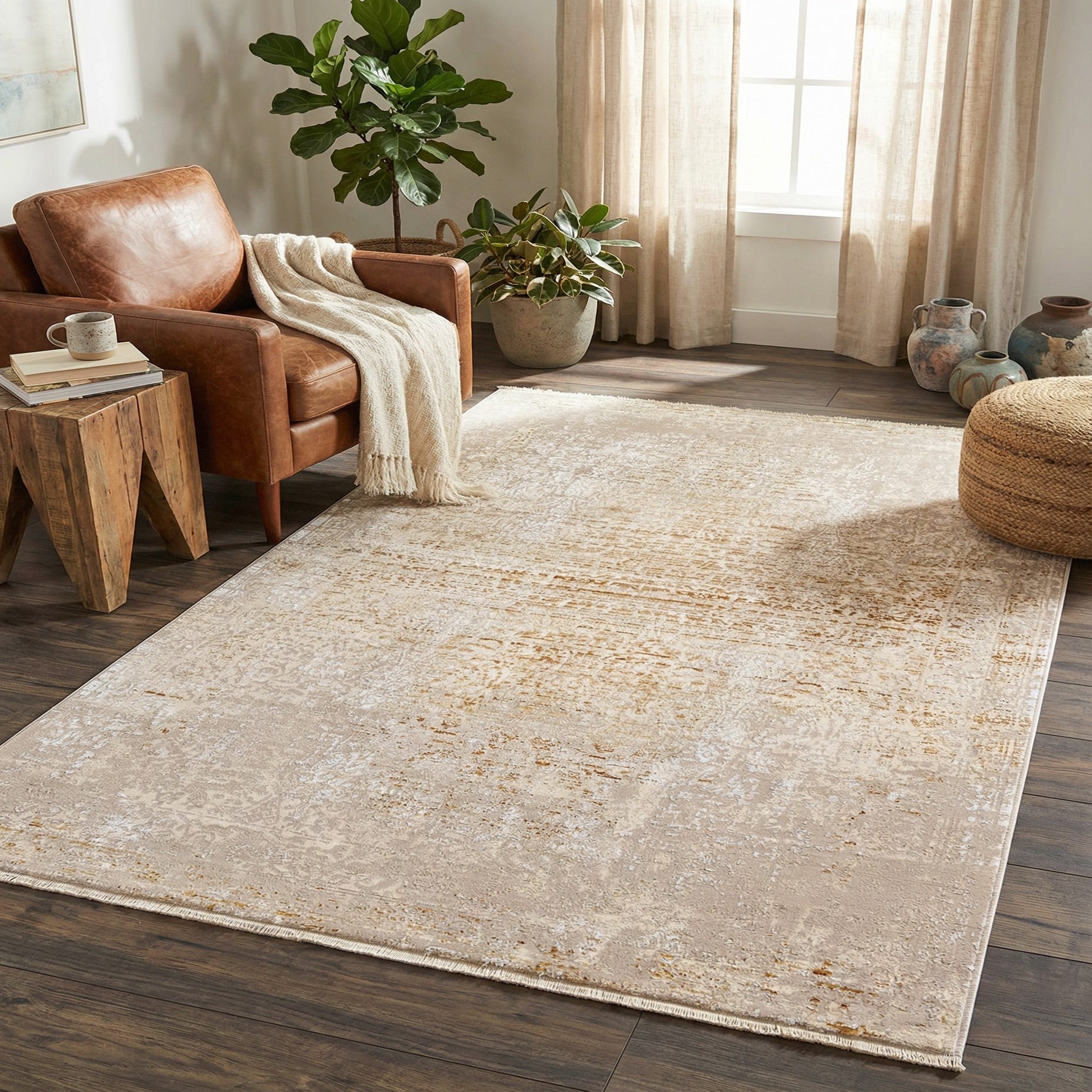 Owing to its color scheme and timeless design, this rug would lend itself well to interior spaces that favor classic, transitional, or even contemporary styling. Ideal scenarios for the Deepa rug include living rooms that balance comfort with a hint of formality, serene master bedrooms, and tasteful office spaces where a touch of elegance is desired. Its neutral hues are especially conducive to being paired with both muted and vibrant color palettes, making it a versatile addition to any interior design plan.