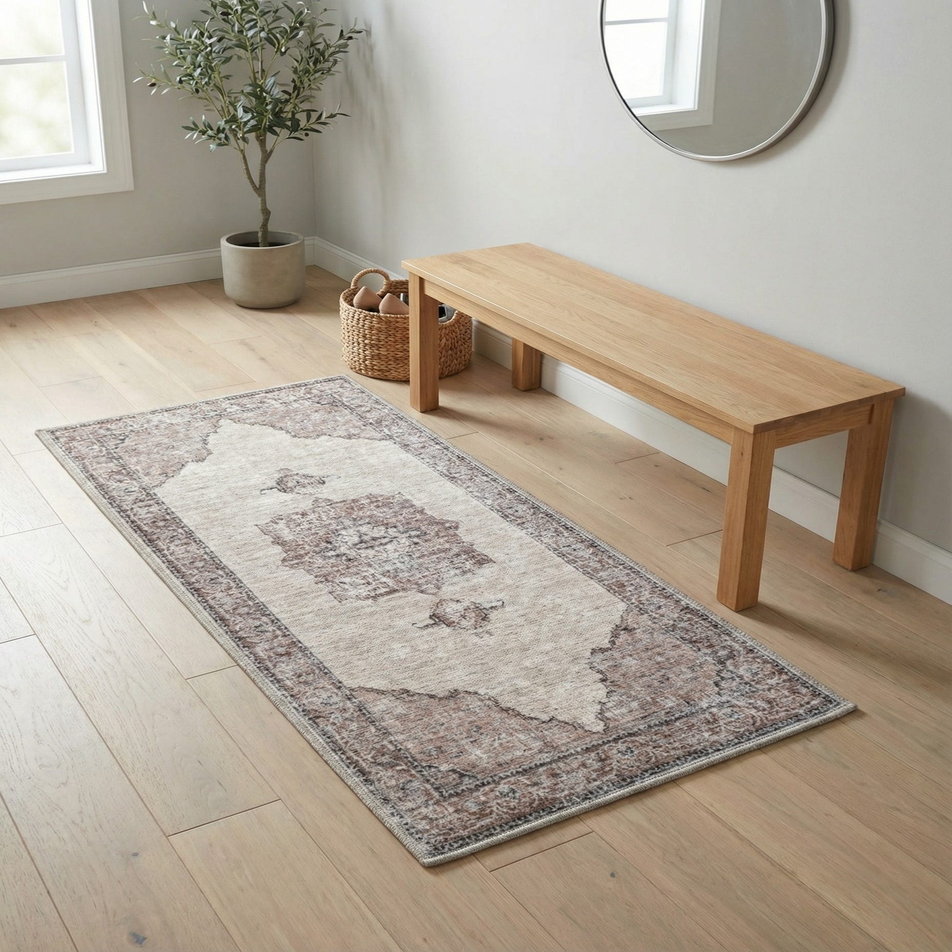 Ideal for adding a touch of elegance in a hallway or entryway, this runner can effortlessly enhance minimalist, transitional, or Scandinavian home decor. Its understated color palette and vintage-inspired pattern bring sophistication to any space without overwhelming the existing interior design elements.