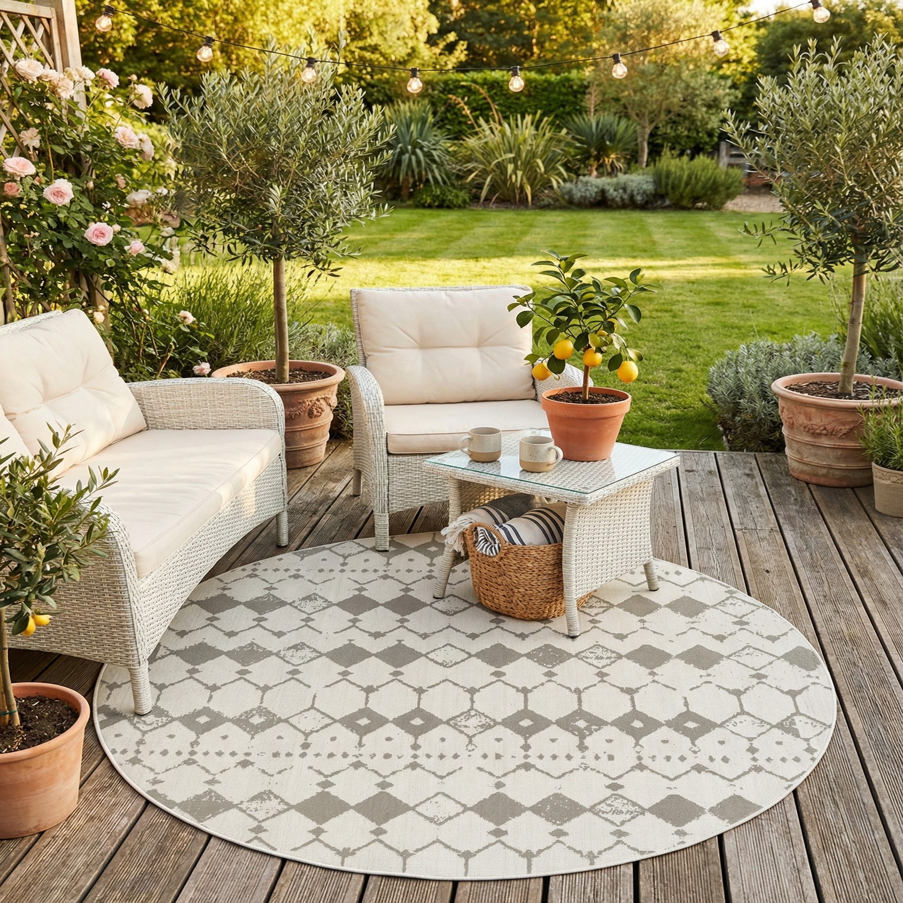 7' x 7' Washable Lattice Indoor / Outdoor Round Rug