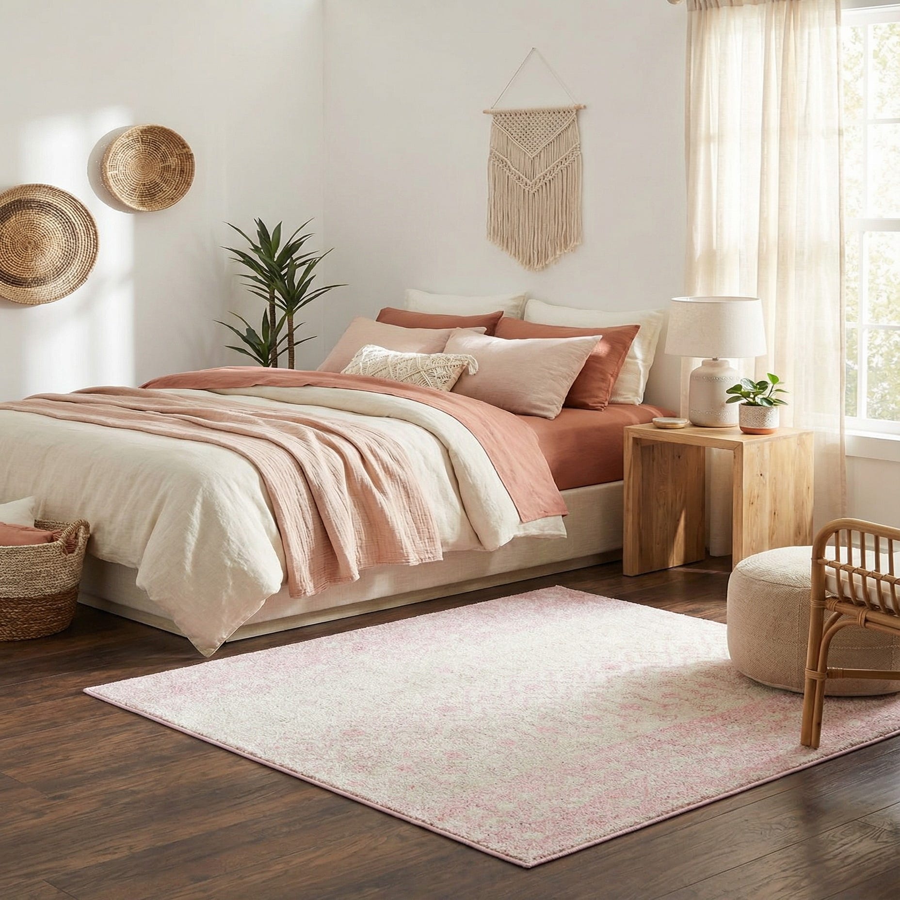 This rug works well in a nursery or feminine bedroom, bringing a calm, layered softness to the floor. It also pairs nicely with light wood furniture and linen textiles for a coastal or Scandinavian-inspired scheme, or can soften a contemporary living room when layered with neutral sofas and metallic accents. The gentle colorway and tactile surface make it a versatile grounding piece for casual, cottage, or modern-boho interiors.