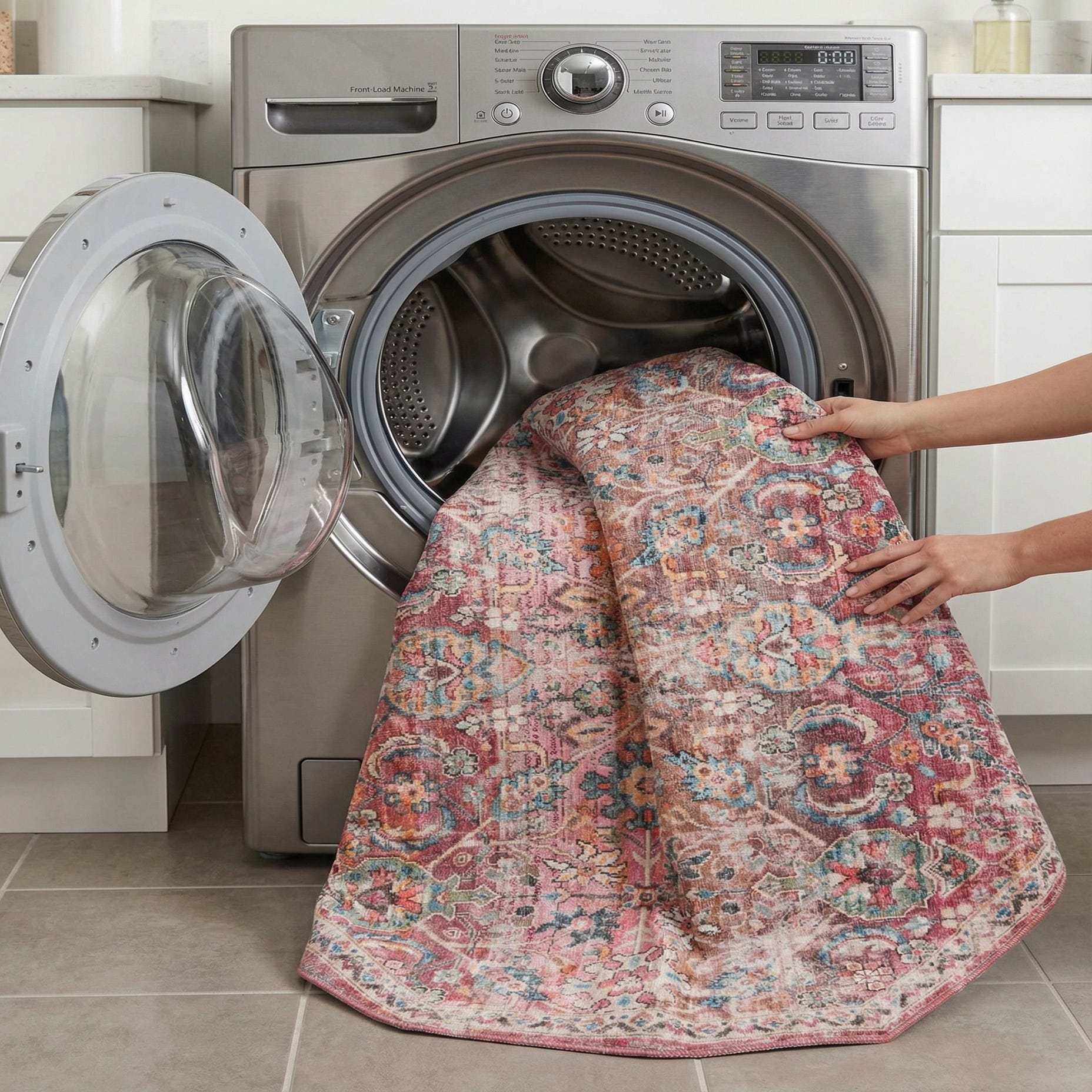 The octagonal shape and warm color story suit a variety of interiors: place it beneath a cozy seating cluster to soften a living room, center it under a round dining table to define the eating area, or tuck it into a bedroom to add a touch of feminine charm. It pairs nicely with painted or weathered wood, muted brass accents and soft linens for a cottage or shabby-chic scheme, and also works with clean-lined mid-century furniture to add warmth and pattern to more modern settings.