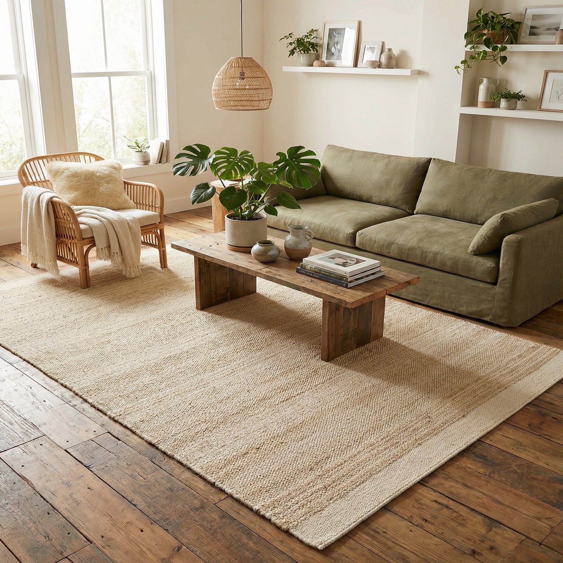This neutral, textural piece suits a range of interiors: layer it beneath a simple sofa in a modern farmhouse living room, place it under a dining table to anchor a light, airy dining space, or add it to a bedroom for a quiet, grounding base. Its understated stripe and natural fibers pair well with coastal, Scandinavian, or minimalist decor and with mixed-material furnishings like wood, rattan, and linen.